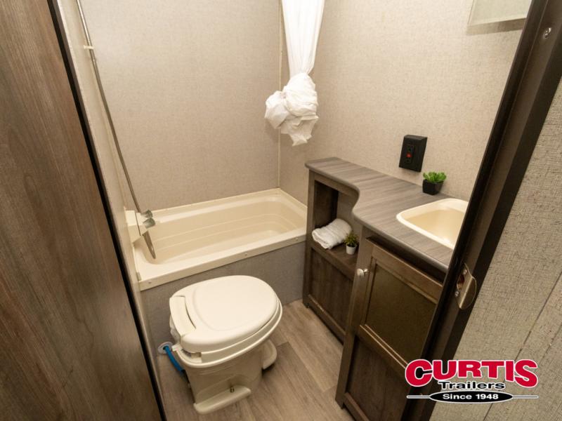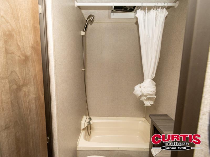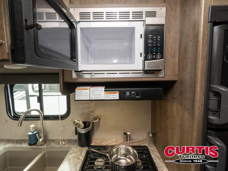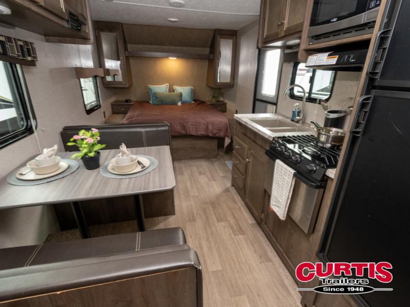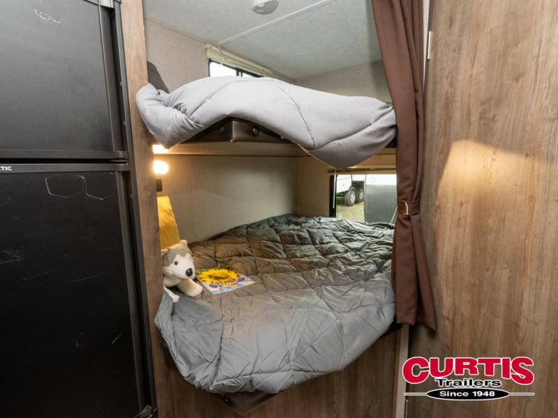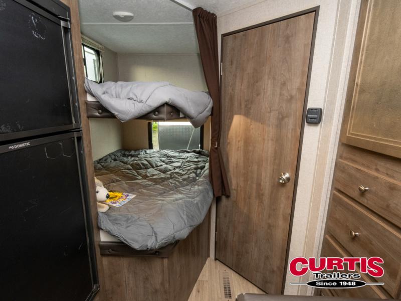 This Coleman Lantern 215BHWE might just be the travel trailer you and your family have been looking for. The kids will love the double size bunk beds so they can invite their friends, and you will appreciate having your own queen bed with USB connections on the opposite end of the trailer. The chef will have the choice of cooking inside with full kitchen amenities, or outside on the outdoor kitchen. Step inside today to find even more features you didn't even think about!