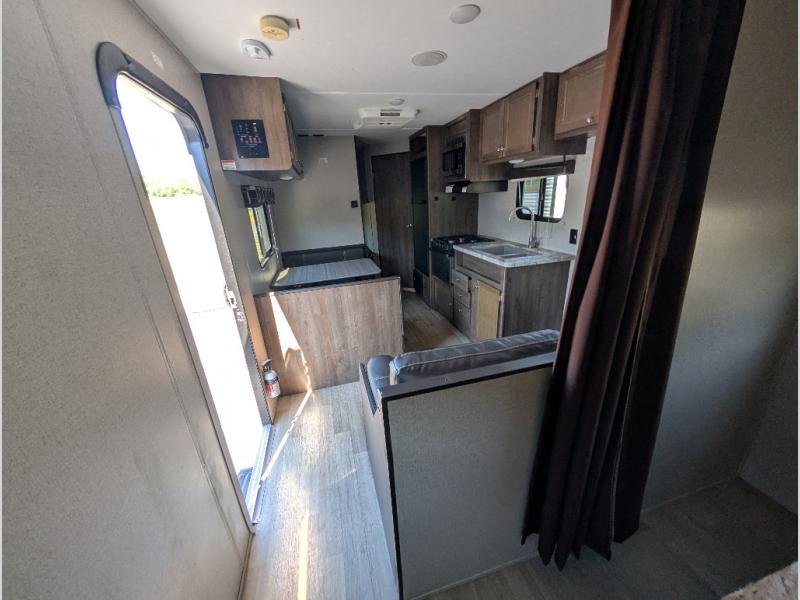 Looking to upgrade the tent to a travel trailer? Need sleeping space for eight? This Coleman Lantern Series 274BH might just fit the bill! From having your own master bedroom with USB connections to your kids having double size bunk beds to call their own, you will love this model. If you let the kids invite friends, they can sleep on the folded down jack knife sofa and dinette. The chef can make meals inside and everyone can dine outside under the awning, or on the dinette. Take a look today, you will want to own this model.
