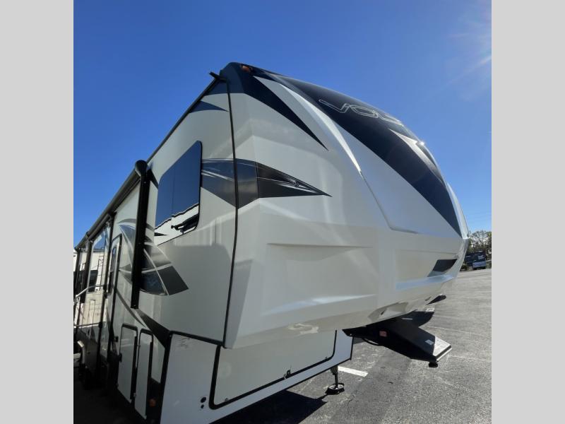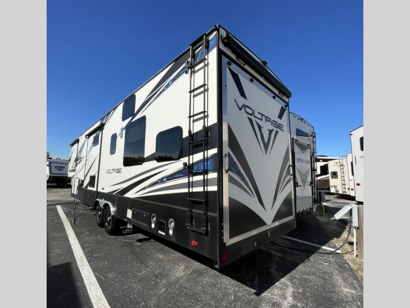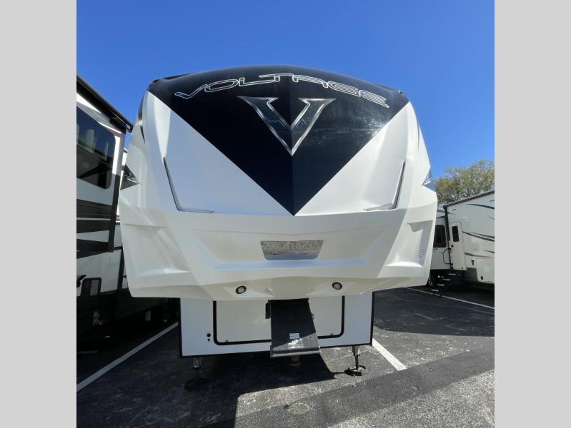 Get ready to take your adventures to the next level with the powerful and feature-packed 2018 Dutchmen RV Voltage V3605—a luxury toy hauler fifth wheel designed for those who want to bring their toys, their crew, and all the comforts of home wherever the road leads.