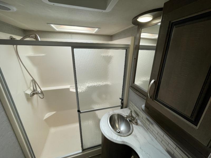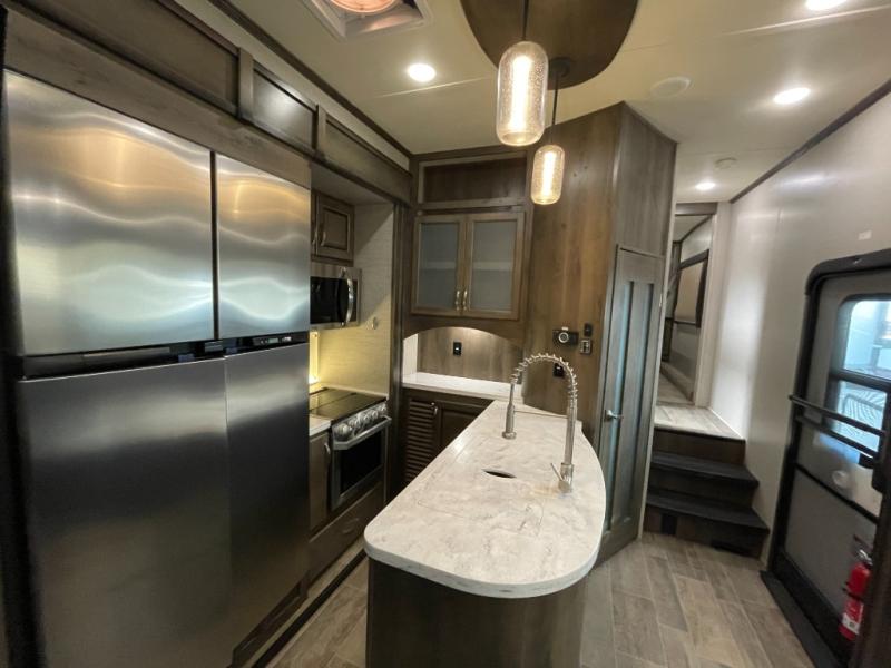 This model is designed for extended stays and all-season comfort. With large fresh, gray, and black water capacities, dual A/C options, and a 50-amp electrical system, you’ll be equipped for long trips and diverse climates. The heated and enclosed underbelly, along with advanced insulation and ducting systems, helps maintain comfort wherever you travel.