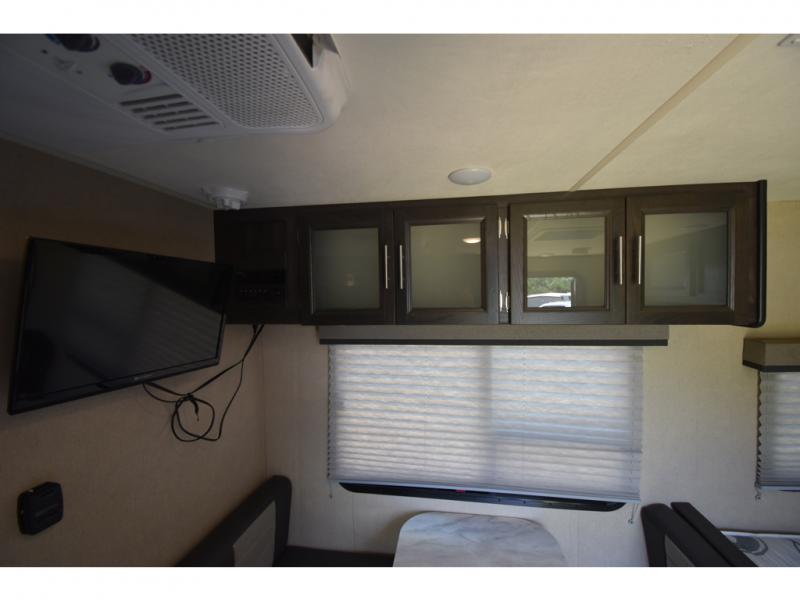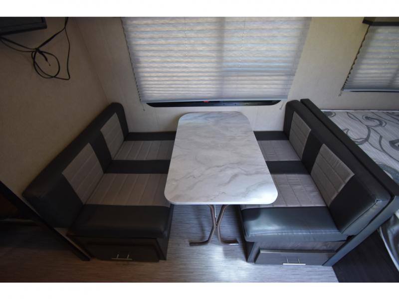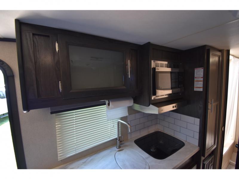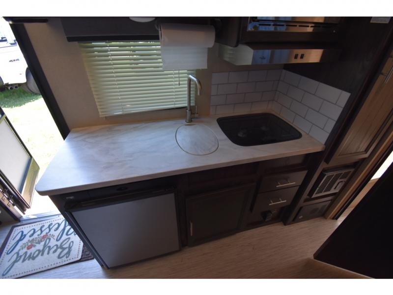 If you have been dreaming about exploring state parks and viewing majestic mountains, but you wish you could take the comforts of home with you, then you need this Kodiak Cub travel trailer. You will enjoy having enough sleeping accommodations for six people, and you will certainly appreciate having your own private bathroom so that you don't have to search around for a clean facility while on the road. The queen-size bed will provide plenty of comfort and relaxation each night, and the bunk beds will be an exciting place for the kids to drift off to sleep. The Pack-n-Play door is a handy addition to this trailer, and it allows you to pack your bikes or larger camping essentials more easily.