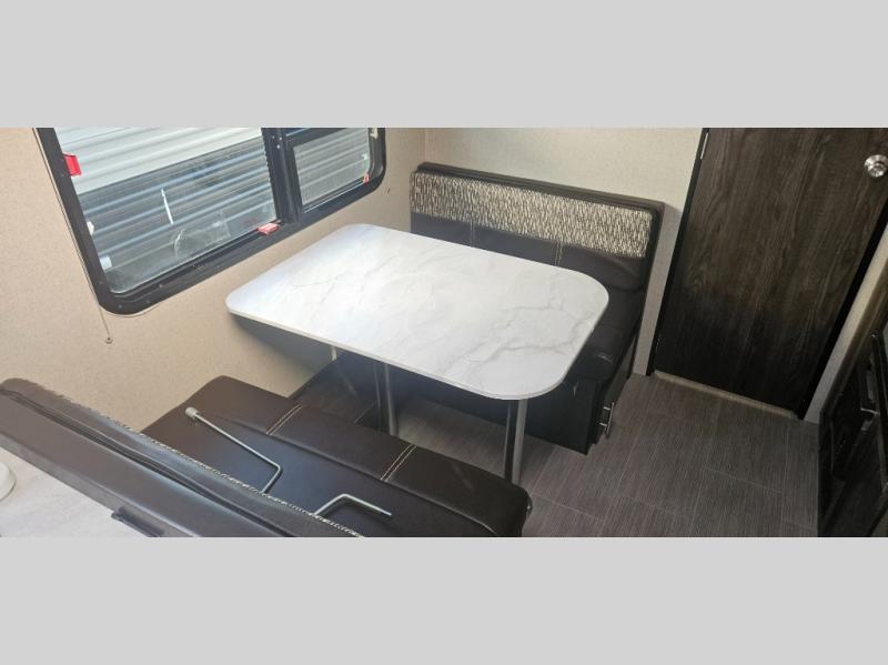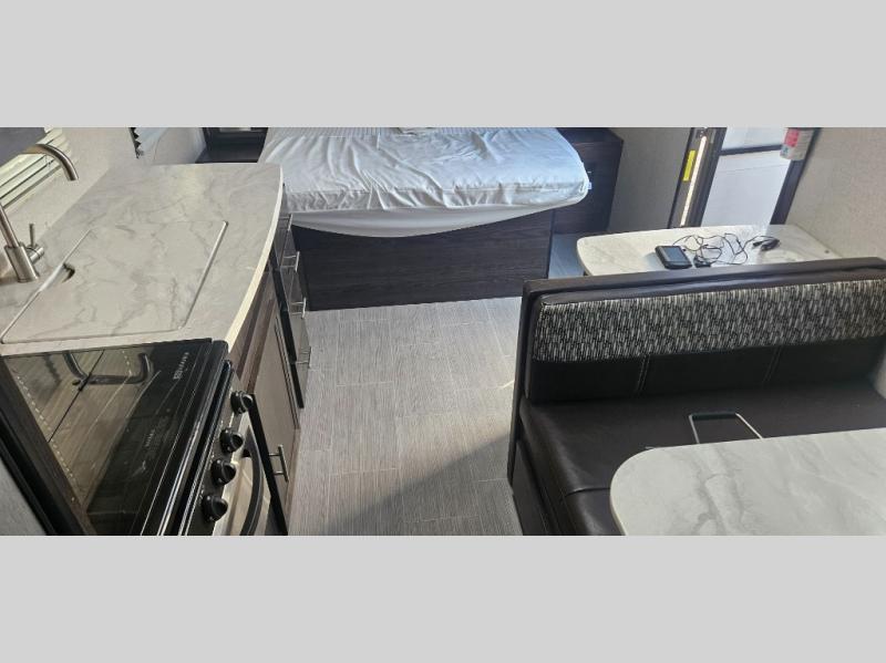 If you have been thinking about owning an RV and you want a unit that will not only look stylish, but will also provide durability, then take a look at this Kodiak Ultra-Lite travel trailer. This trailer is great for those who are new to the camping experience or for those who enjoy living on a smaller scale. Imagine being able to cook inside on the 3-burner range top, eat together at the booth dinette, and take advantage of the full bathroom amenities, all in a lightweight unit that is able to be towed by a variety of vehicles. At the end of each night, you will find it thoroughly relaxing to fall asleep on the queen-size bed.