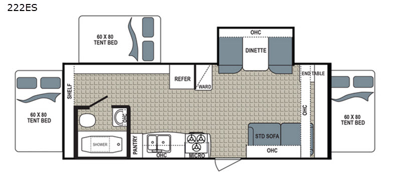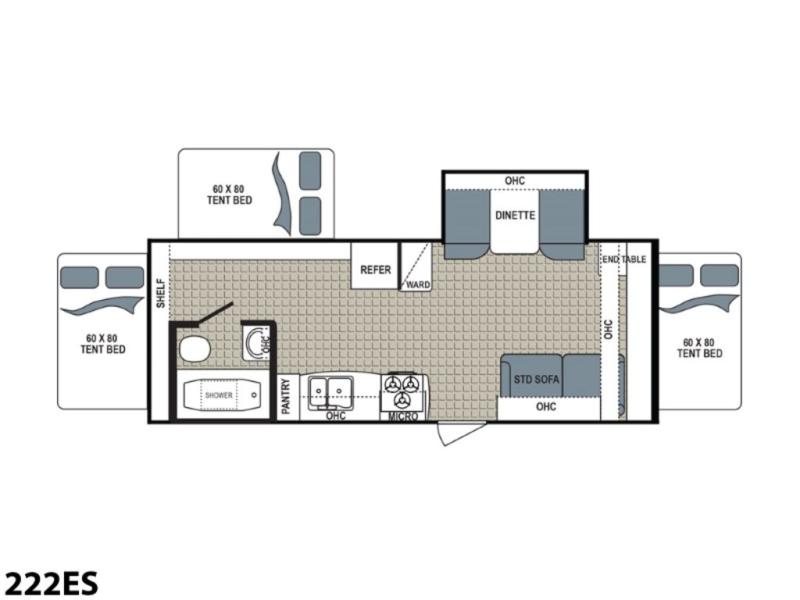 You will be amazed at the amount of space inside this Dutchmen Kodiak Ultra Lite expandable 222ES with triple queen size tent end beds and a single slide out. You will find full kitchen and bath amenities, as well as extra sleeping space on the slide out dinette, and sofa. It's time to make the upgrade to an easy to store and tow expandable and start planning your next campout tomorrow!