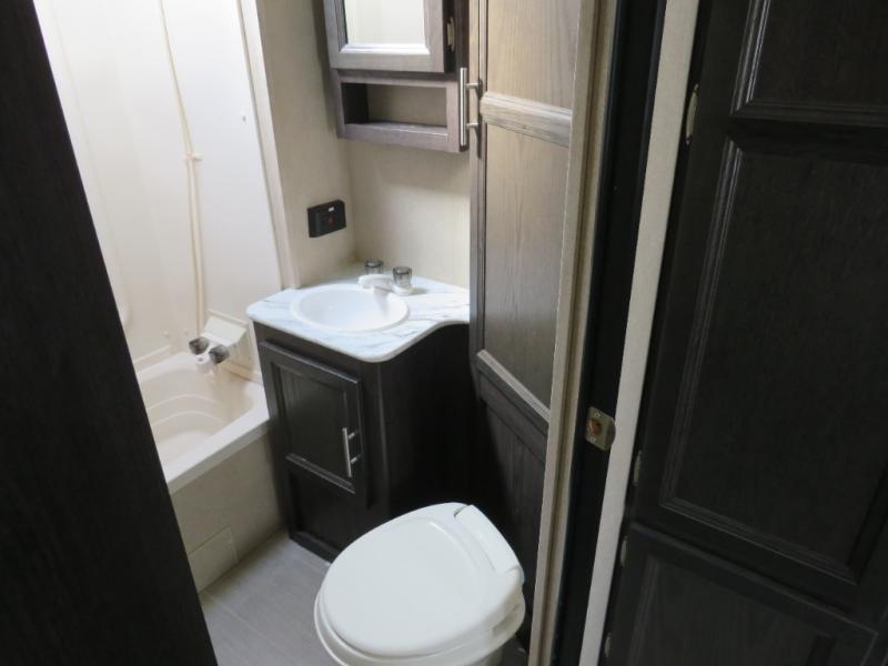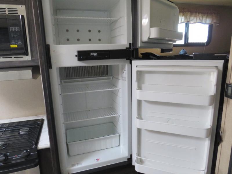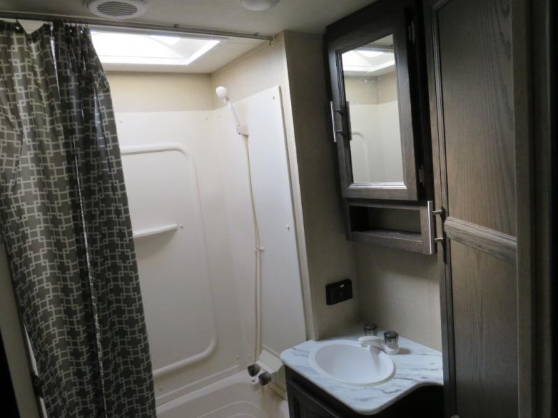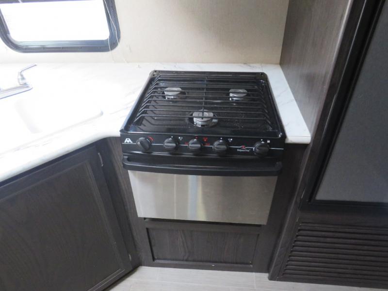 If you are ready for an adventure of a lifetime into the mountains or across the country, then you need this Kodiak Ultra-Lite travel trailer. The set of double bunk beds are a huge help in allowing this trailer to sleep eight people during any weekend getaway, and the three-burner range top in the kitchen is essential for keeping your friends and family well fed throughout the trip. Because there has been a full bathroom installed in this trailer, you don't have to stop and search for a public facility whenever you camp out, and the bathroom skylight keeps that area feeling open and inviting throughout the day.