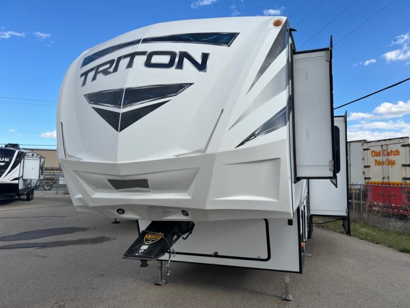 With any Triton fifth wheel toy hauler by Dutchmen RV you will enjoy the luxurious interior as well as the garage features including the spring assist ramp door, the 30 gallon gasoline pump station to keep your toys fueled all weekend long, the Tuff ply garage flooring for durability, and 2,500 pound tie downs to secure your toys on the go. Inside each model there is an LCD HDTV, upgraded residential furniture, solid surface countertops, and a stainless steel kitchen sink. You can be an active and adventures person but love the details of fine living in a Triton fifth wheel toy hauler. It's time to stop dreaming about adventure and luxury, and start living it!