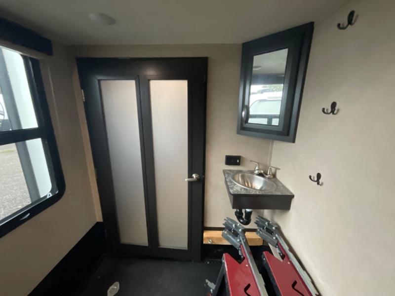 Outside enjoy a gasoline pump station for keeping the fun going all weekend long, and two awnings to provide a bit of outdoor living space for you to enjoy. You may even decide to add an optional entertainment center outside, and an optional ramp door patio with entry steps and awning.