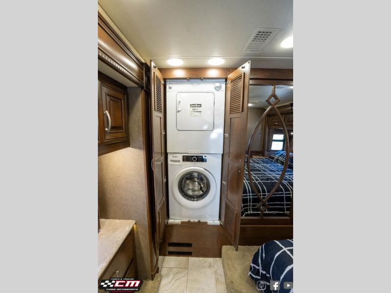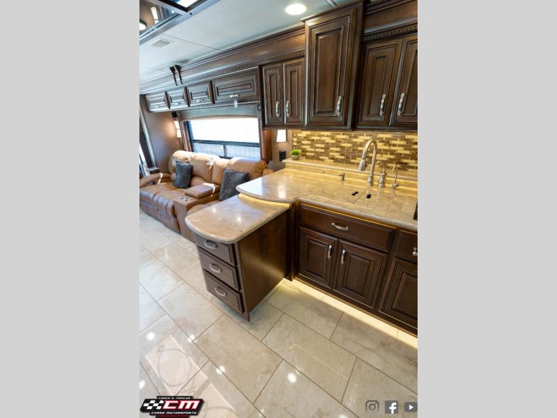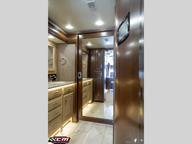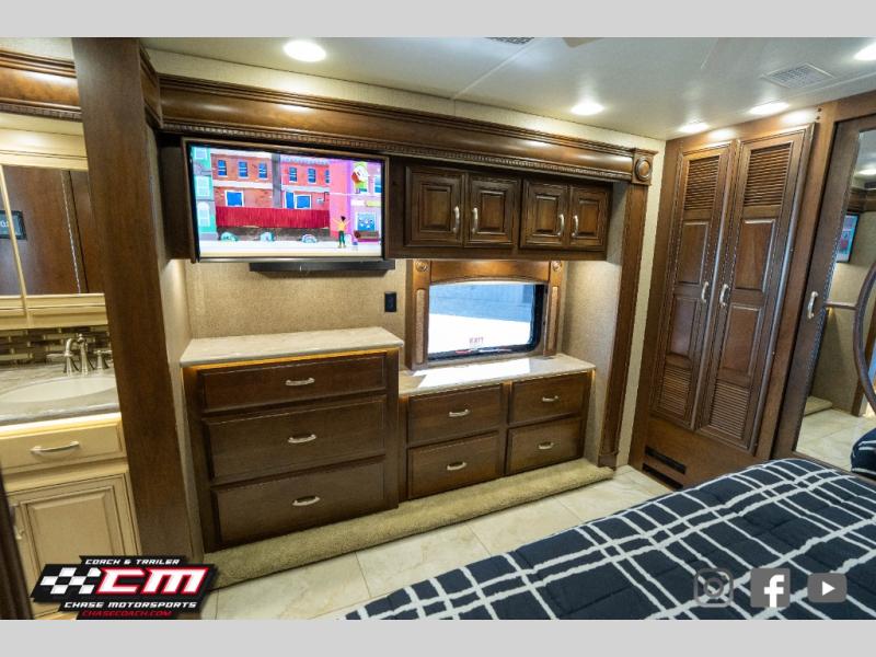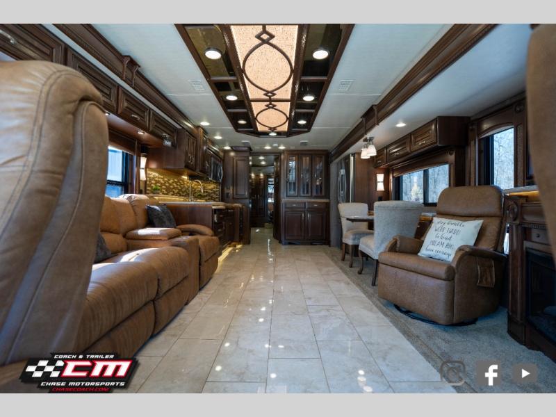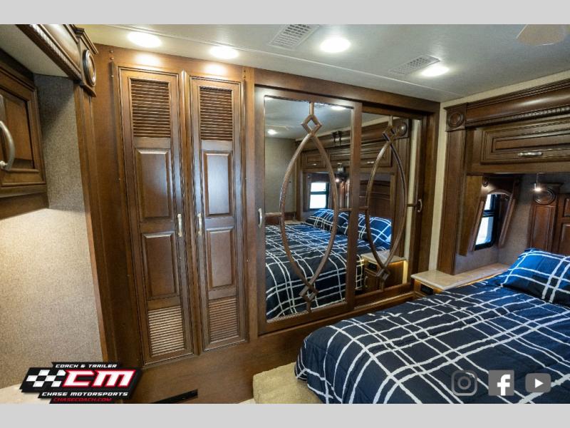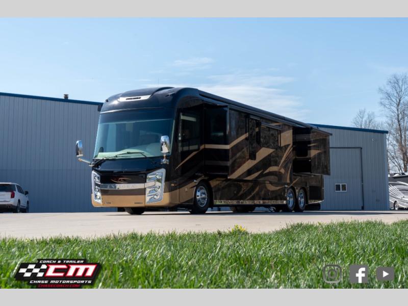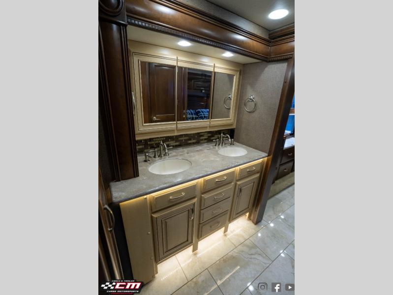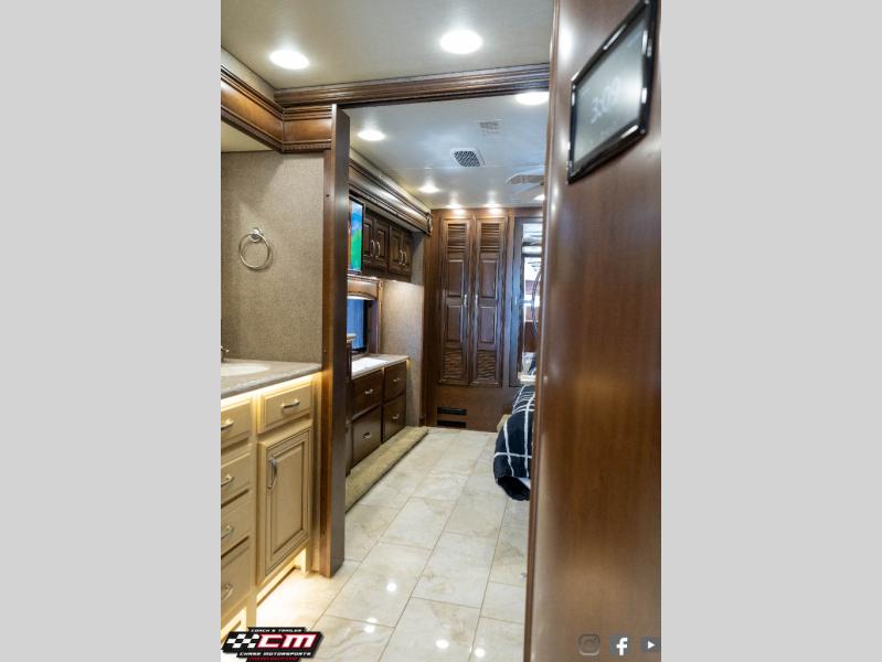 This Anthem 42DEQ diesel motor home offers quad slides, a split bath with TWO sinks, and a rear master bedroom, plus more!