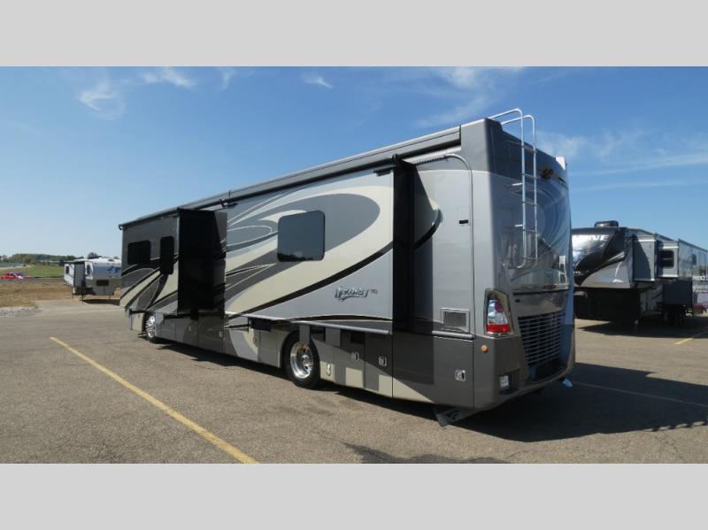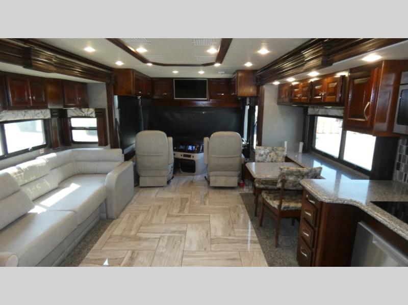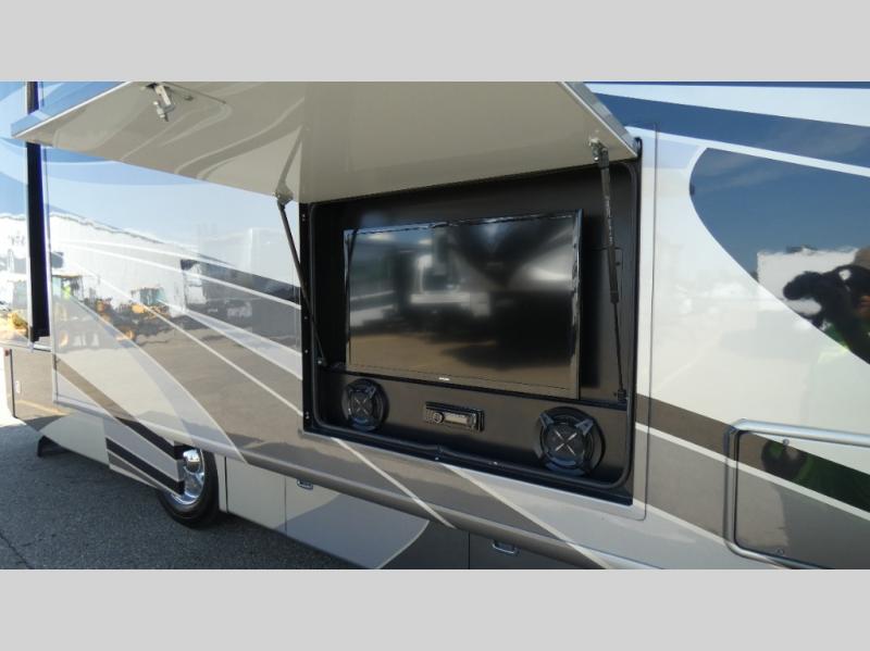 Are you ready to travel in style and comfort? Well, come step onboard the Fleetwood Discovery where you will immediately feel at home. There are also polished solid-surface countertops, a 22 cu. ft. refrigerator, and a tile backsplash in the kitchen. Along the exterior there are bus-style side swing luggage doors, an entertainment center with a 32" LED HDTV, and a power awning with LED light strip and wind sensor react. Each model is also equipped with a Firefly Integrations control panel and a central vacuum system which allows you to easily clean up, plus so much more!