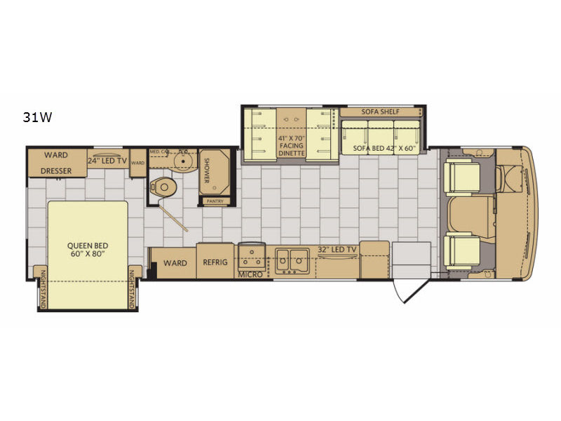 This Fleetwood Flair LXE class A motorhome model 31W features dual slide outs, and all the accommodations to make traveling comfortable.
