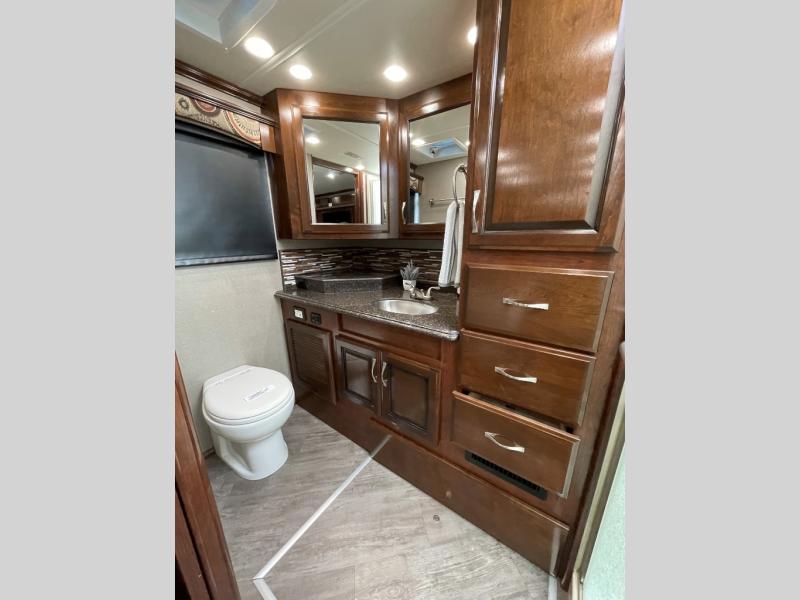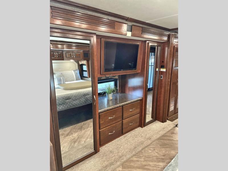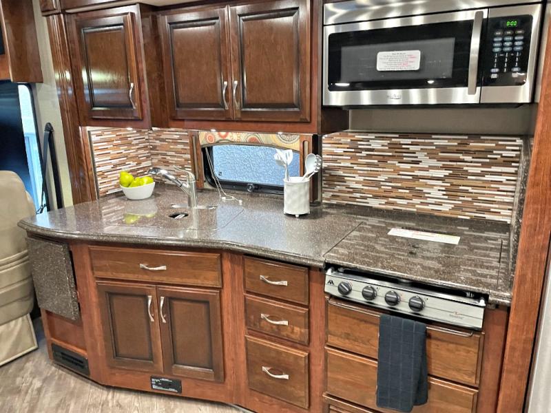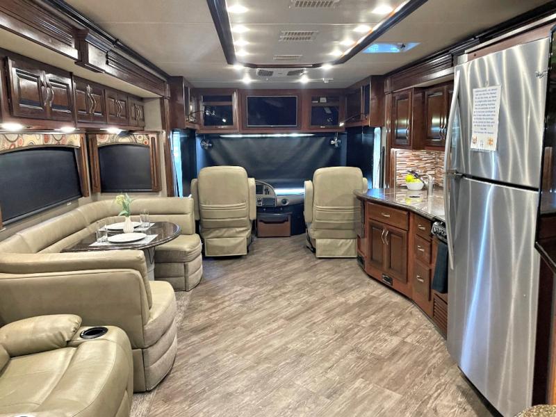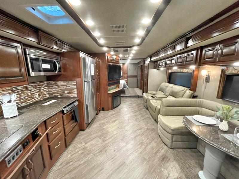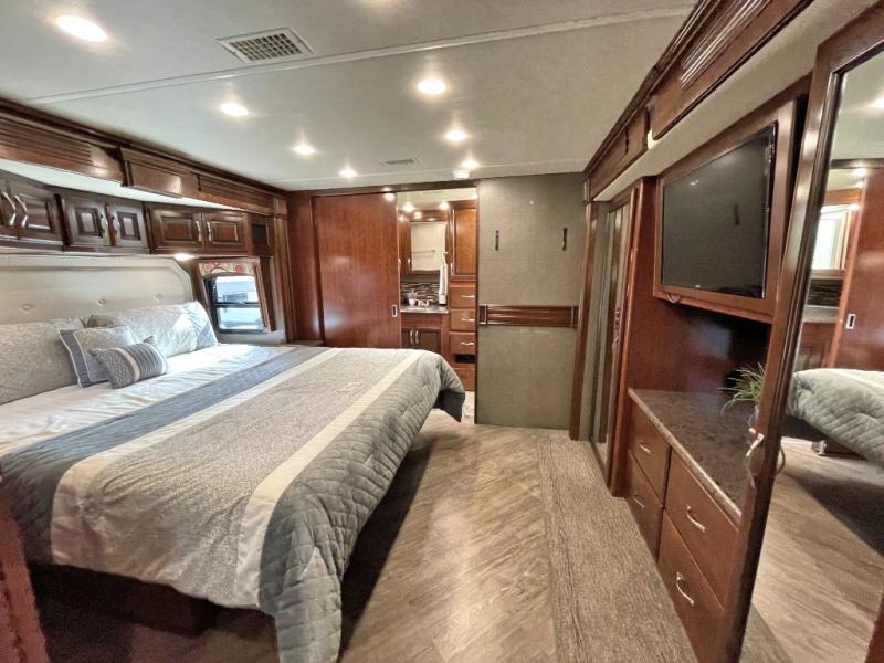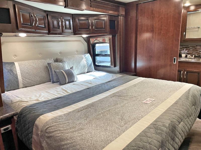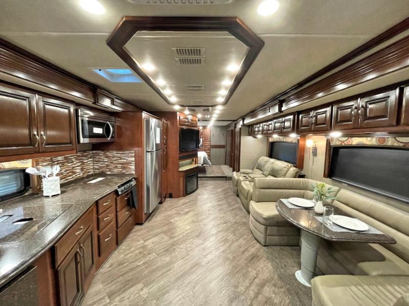 Come start your next cross country trip with this luxurious 38K Pace Arrow LXE diesel motor home. Model 38K provides everything you need to have a wonderful experience traveling from the triple slide outs which include a full wall slide out to the bath and a half there is plenty of room for your family! Enjoy your meals or a board game at the 88" x 44" u-dinette and after dinner come relax at the 81" x 70" transformer L-sofa. The stackable washer and dryer allows you to keep up with your laundry while you are away from home. In the rear bedroom you will find an articulating king Serenity Series bed plus plenty of storage with a full length wardrobe.