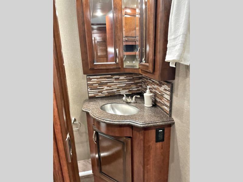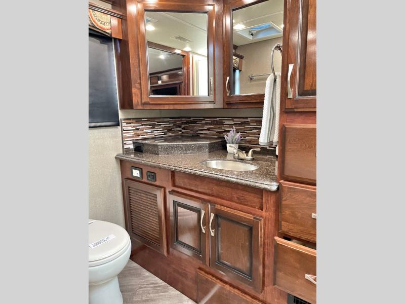 With any Fleetwood Pace Arrow LXE model you will experience luxury oozing from every area! These class A diesel coaches are bringing you class A comfort and conveniences, along with plenty of technology and power, to take you anywhere in America you dream to go. These units feature the industry's largest pass-through chassis storage thanks to the Power Bridge raised-frame design. This also allows for oversized heated and enclosed water tanks as well. Besides heated and enclosed tanks for weather protection, the coach also features solid bead-foam engineered fit insulation. With your choice of an exterior full body paint color scheme your neighboring campers will be begging to get a look inside. What they will find is a luxurious coach starting with wall-to-wall 12" x 24" plank style flooring, hardwood cabinetry, and residential soft-touch furnishings. The 84" ceiling height will also make it feel open and spacious just like home along with having a residential refrigerator, full mosaic glass tile back-splash, solid surface countertops, plus large screen televisions, and even a fireplace in select models. Come choose your fully loaded luxury class A diesel Pace Arrow LXE today, and enjoy your very next journey!