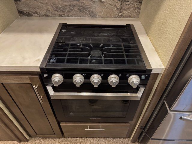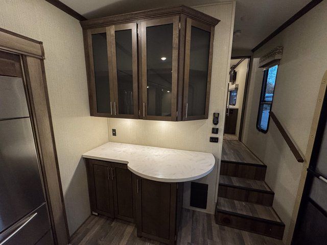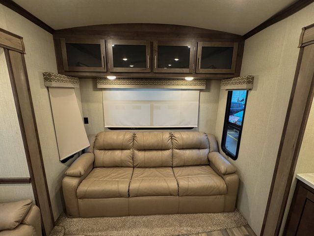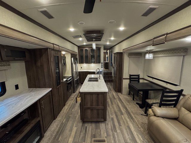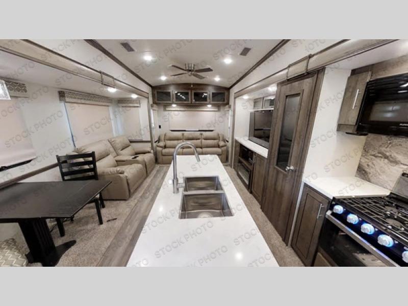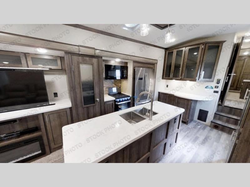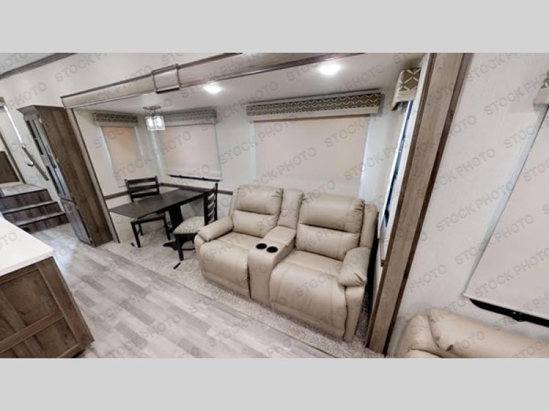 Plan to make many memories with your family while you camp in this Cardinal Limited 3655RSLE fifth wheel. In the kitchen you will enjoy features such as solid surface kitchen sink covers which adds a bit more work space. Your perishables can be stored in the 20 cu. ft. residential refrigerator, plus there is a Furrion 2 in 1 oven/range. Along the rear wall there is a 90" sofa with a hide-a-bed where you can relax after a day of being outdoors. Additional seating can be found at the two recliners or optional theater seats. Enjoy watching a movie or show at the entertainment center which is located within the roadside slide out. Head upstairs and you will find the bathroom and the front bedroom. In the bedroom enjoy a good night's rest on the king bed.