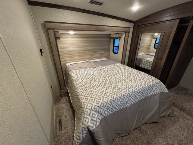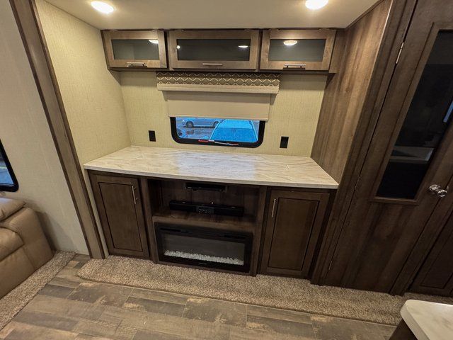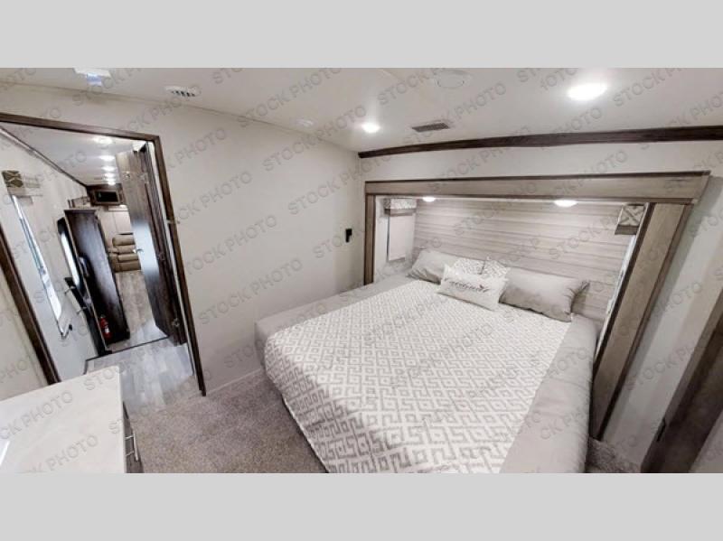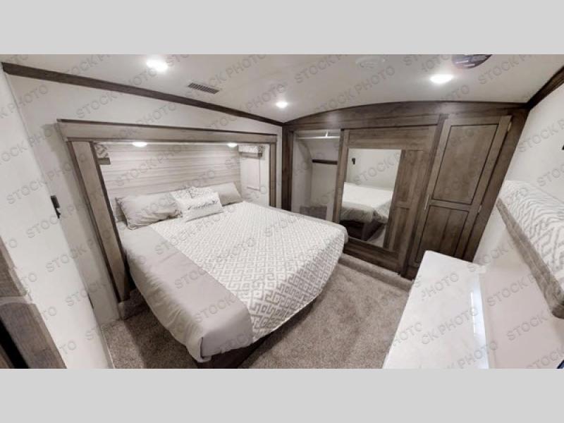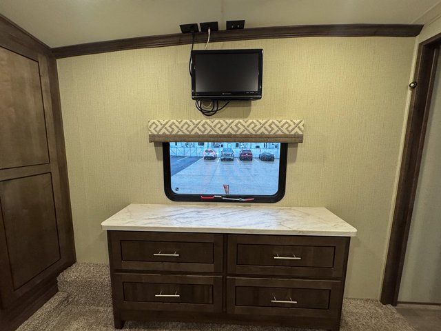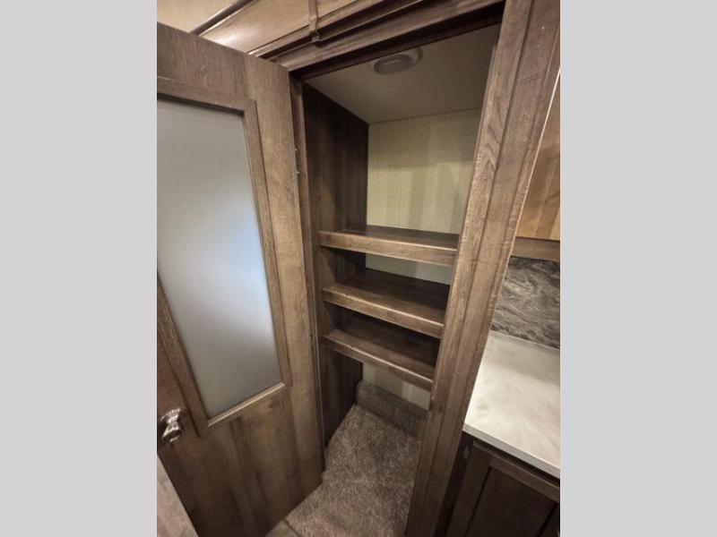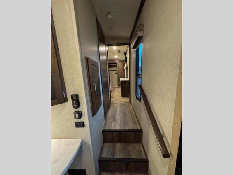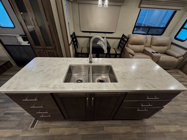 The Cardinal Limited fifth wheels are anything but ordinary. You will appreciate all of the space inside each model. They offer plenty of features such as a large exterior pass-through storage for all of your extra camping gear, frameless windows, an electric awning with an LED light strip, plus roller shades with a slow rise function. The Essential Cardinal Camping Package includes features such as LG solid surface kitchen countertops with solid surface sink covers, a sound bar with bluetooth and DVD player, a stainless steel double bowl sink, MOR/RYDE step-above entry step, WIFI signal range booster, and a residential high rise "bullet" faucet.