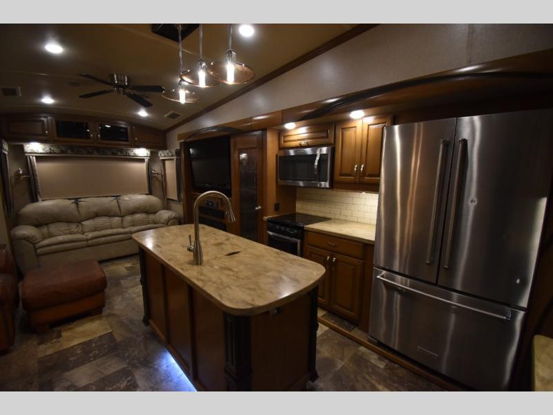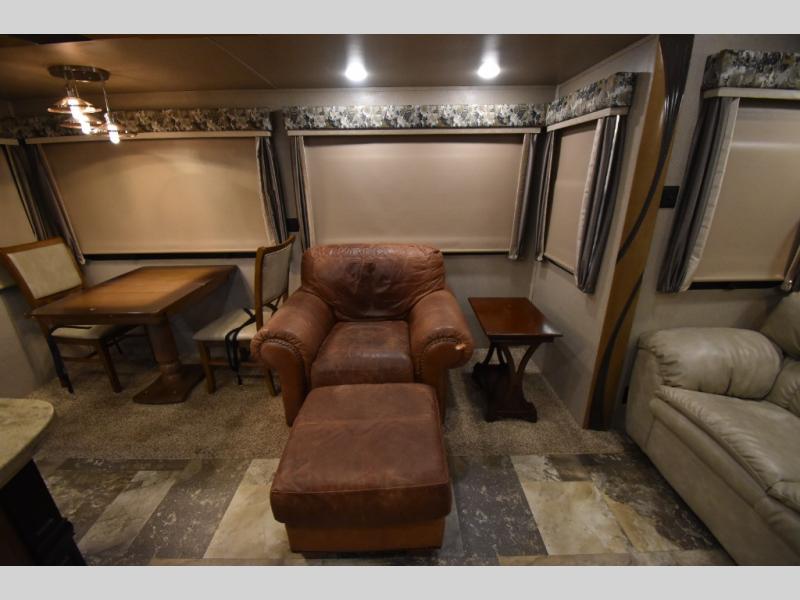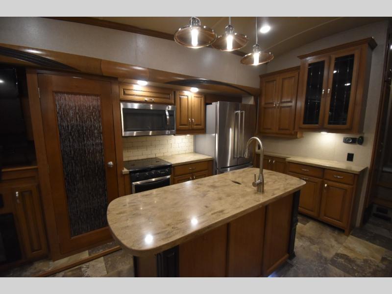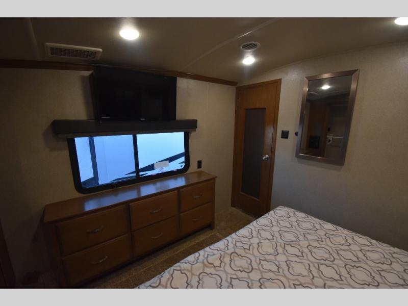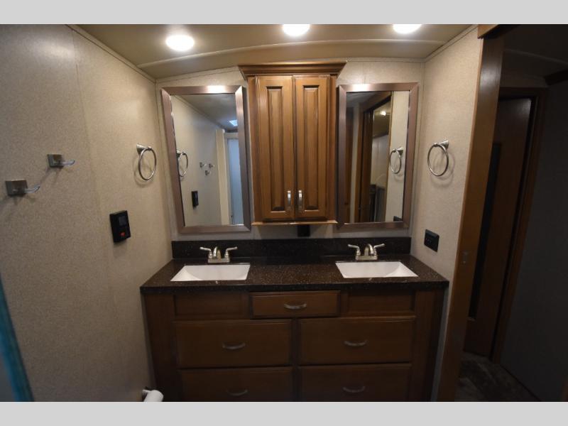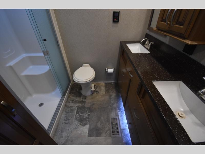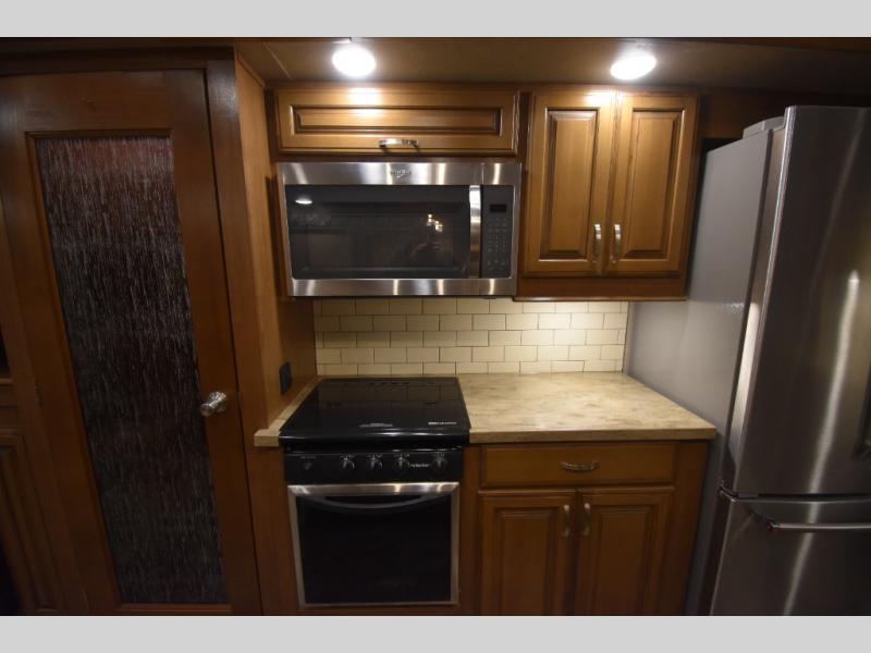 With any Forest River Cedar Creek Hathaway Edition fifth wheel you will find Nev-R-Adjust brakes which allow for improved stopping power in half the distance. There is also an E-Z Lube rubber equalization system and E-Z Lube heavy duty axles. In the bedroom you will find extra wide mirrored closet doors plus a walk-in closet and the radius ceilings give added headroom. The kitchen is everything that you would expect to find and more from the stainless steel 30" over the range microwave, to the recessed stainless steel large oven, you won’t be disappointed! If you prefer a bit more conveniences throughout then you will enjoy the Hathaway Edition Package which includes a 36" fireplace with remote and storage, solid surface LG counter tops with an oversized stainless steel sink, Congoleum Carefree designer flooring, On Demand hot water heater, and so much more!