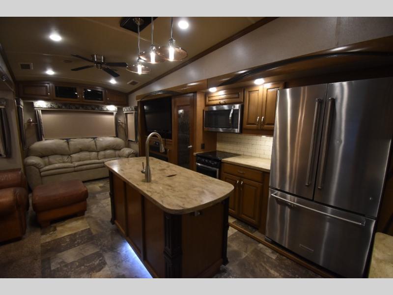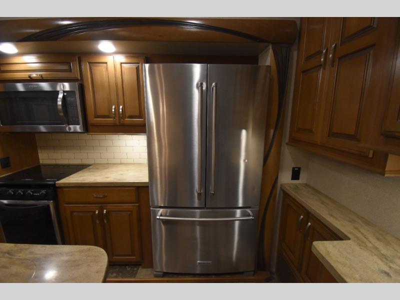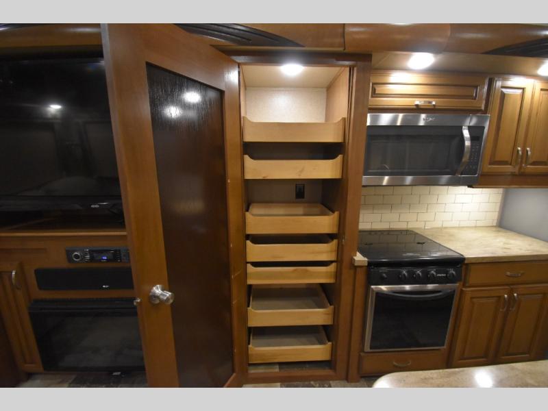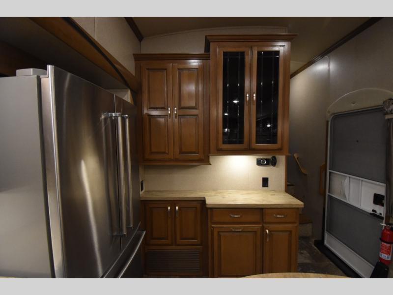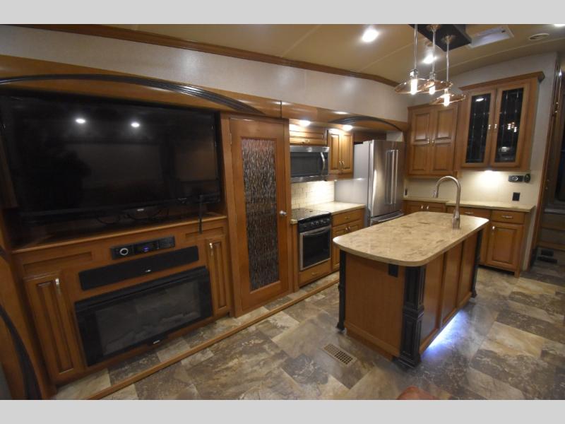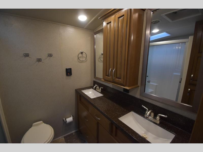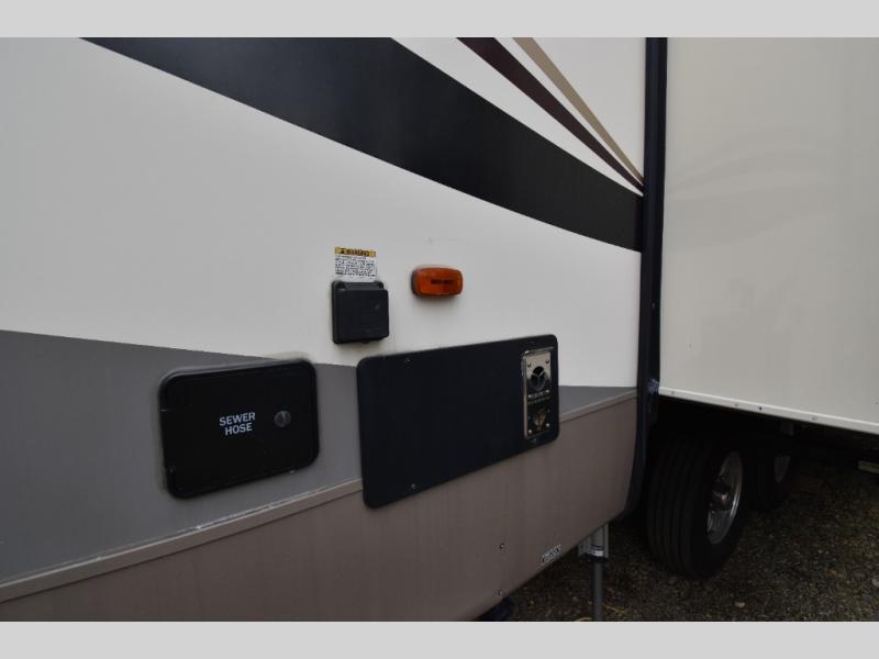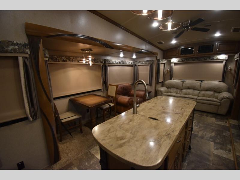 With any Forest River Cedar Creek Hathaway Edition fifth wheel you will find Nev-R-Adjust brakes which allow for improved stopping power in half the distance. There is also an E-Z Lube rubber equalization system and E-Z Lube heavy duty axles. In the bedroom you will find extra wide mirrored closet doors plus a walk-in closet and the radius ceilings give added headroom. The kitchen is everything that you would expect to find and more from the stainless steel 30" over the range microwave, to the recessed stainless steel large oven, you won’t be disappointed! If you prefer a bit more conveniences throughout then you will enjoy the Hathaway Edition Package which includes a 36" fireplace with remote and storage, solid surface LG counter tops with an oversized stainless steel sink, Congoleum Carefree designer flooring, On Demand hot water heater, and so much more!