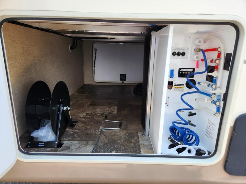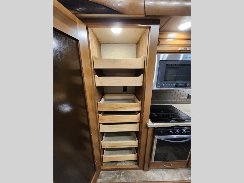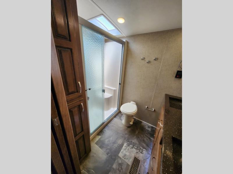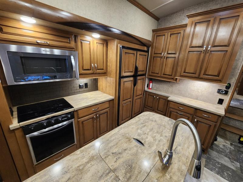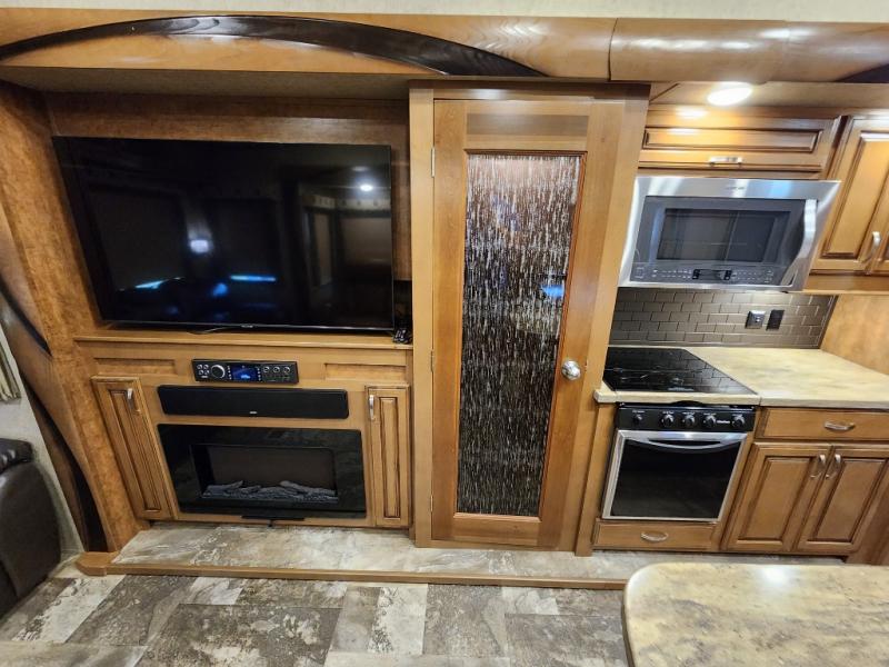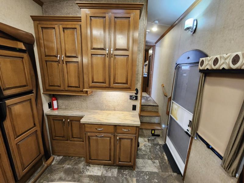 With any Forest River Cedar Creek Hathaway Edition fifth wheel you will find Nev-R-Adjust brakes which allow for improved stopping power in half the distance. There is also an E-Z Lube rubber equalization system and E-Z Lube heavy duty axles. In the bedroom you will find extra wide mirrored closet doors plus a walk-in closet and the radius ceilings give added headroom. The kitchen is everything that you would expect to find and more from the stainless steel 30" over the range microwave, to the recessed stainless steel large oven, you won’t be disappointed! If you prefer a bit more conveniences throughout then you will enjoy the Hathaway Edition Package which includes a 36" fireplace with remote and storage, solid surface LG counter tops with an oversized stainless steel sink, Congoleum Carefree designer flooring, On Demand hot water heater, and so much more!