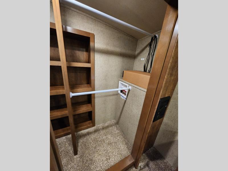 Bring all of the comforts of home with you when you choose to camp with this triple slide out Cedar Creek Hathaway Edition 36CK2 fifth wheel. In the kitchen there is plenty of work space to prepare your favorite meals. Clean up is a breeze at the island. Here you will find a double sink plus if you choose to add the optional dishwasher then your time cleaning up will be cut in half! When you are ready to call it a day, then head up to the private front bedroom. Here you will find a king bed and plenty of storage with the large wardrobe and dresser. This room has also been prepped for a washer and dryer so now you can easily keep up with your laundry while you are away from home!