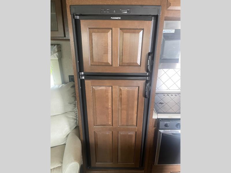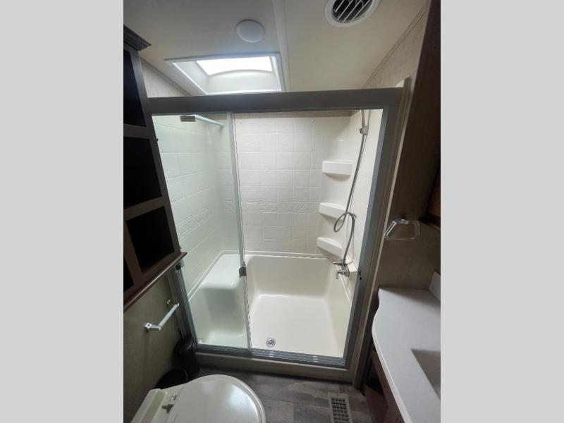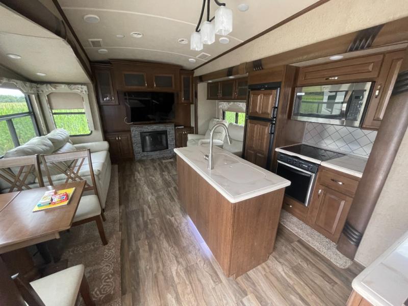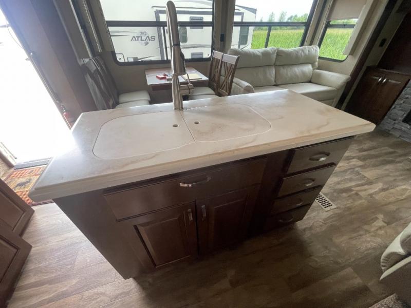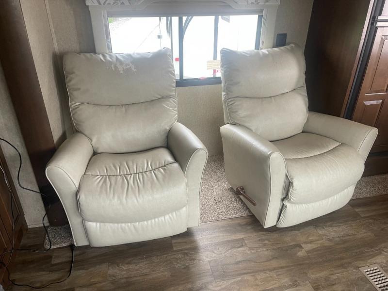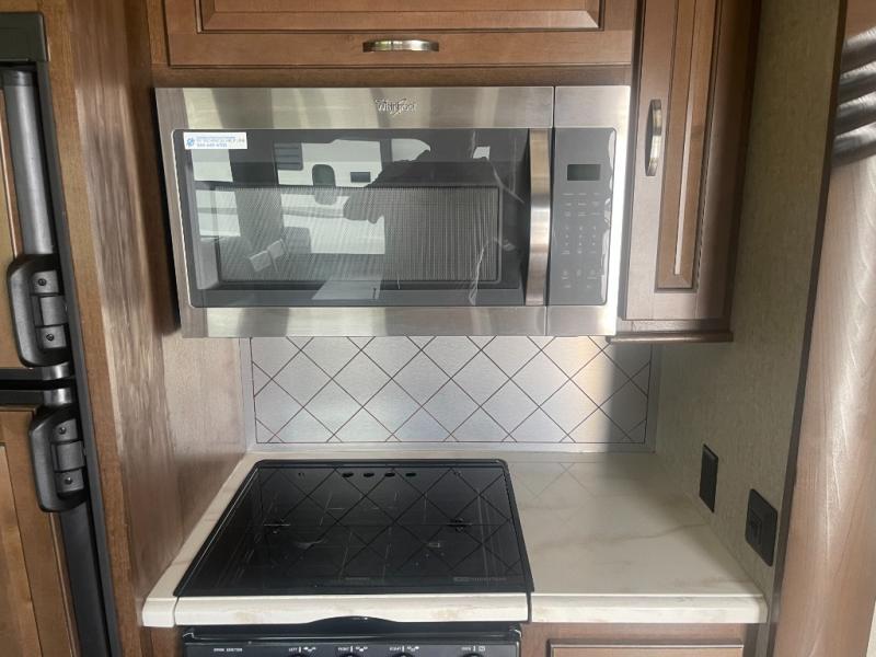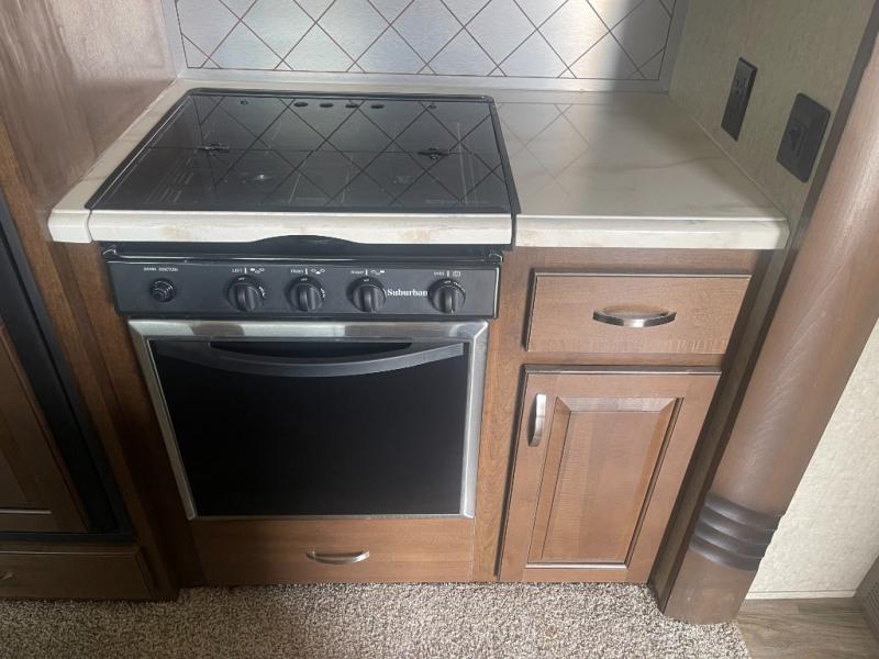 With any Forest River Cedar Creek Silverback Edition fifth wheel you will find cathedral slide rooms in the main and bedroom slides which help to open up the living space throughout each model. You will enjoy a good night’s rest of the Serta residential mattress plus the deluxe blackout roller shades add the privacy you desire. The kitchen is everything that you would expect to find and more from the recessed stove top with glass cover and front, full panel backsplash, to the stainless steel under-mounted sink, you won’t be disappointed! The 36" electric fireplace, Congoleum Designer Carefree plank flooring and Shaw carpeting are just a few of the other comforts you will find throughout each model and more!