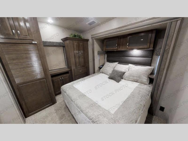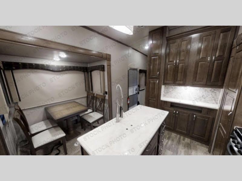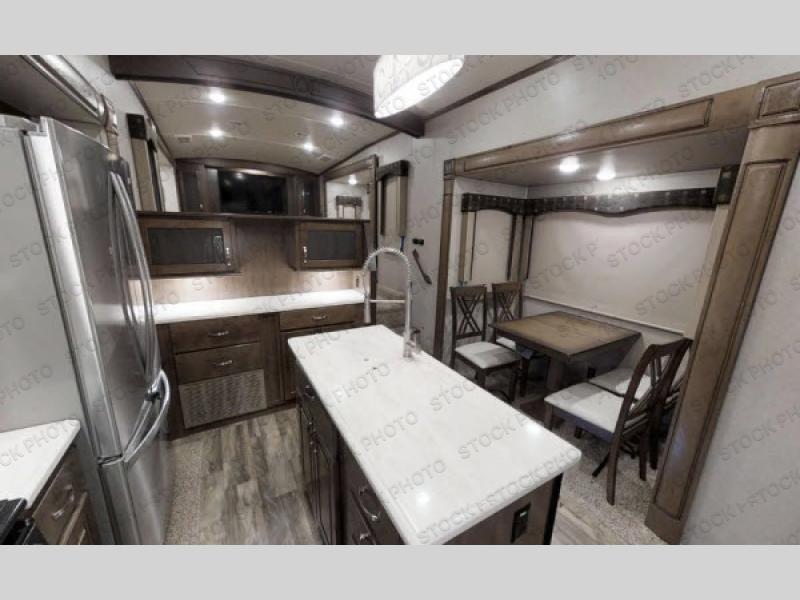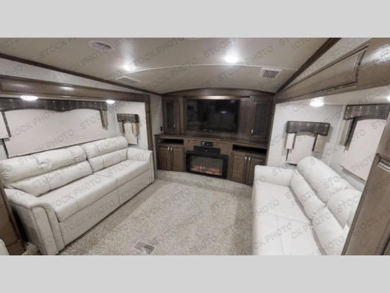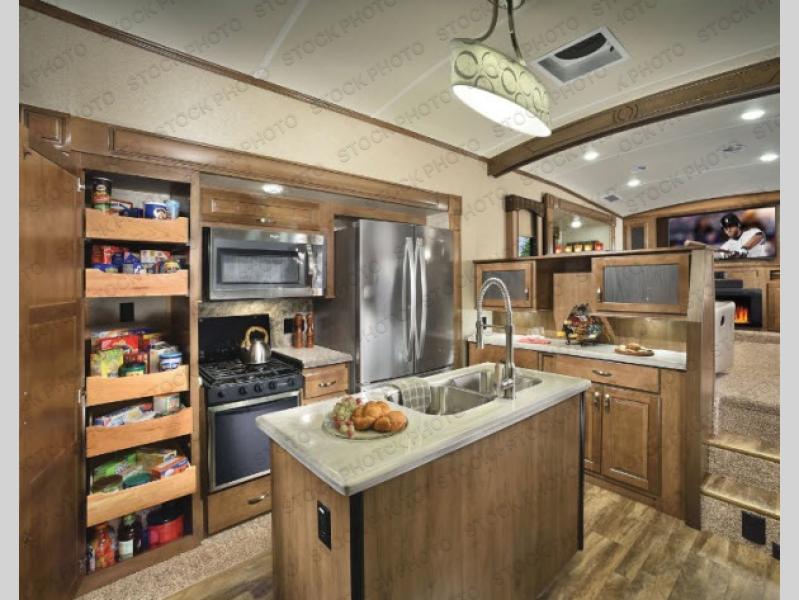 With any Forest River Cedar Creek Silverback Edition fifth wheel you will find cathedral slide rooms in the main and bedroom slides which help to open up the living space throughout each model. You will enjoy a good night’s rest of the Serta residential mattress plus the deluxe blackout roller shades add the privacy you desire. The kitchen is everything that you would expect to find and more from the recessed stove top with glass cover and front, full panel backsplash, to the stainless steel under-mounted sink, you won’t be disappointed! The 36" electric fireplace, Congoleum Designer Carefree plank flooring and Shaw carpeting are just a few of the other comforts you will find throughout each model and more!