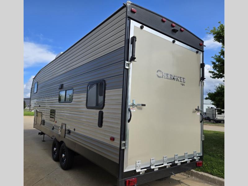No matter which Cherokee model by Forest River you choose, you can rest assured knowing that each unit is built to provide you with great value, comfort and style making is easy to get up and go as soon as the urge strikes you. Each model features two-toned exterior metal and upgraded graphics, a one-piece rubber roof with 3/8" walkable roof decking, as well as a front stone guard for protection. Self-adjusting brakes and quick super lube axles are two additional features that you are sure to appreciate on the exterior of every Cherokee model. Inside each unit, you will enjoy comfortable seating, oversized windows that provide a great view and an abundance of natural lighting, plus a family friendly and functional kitchen featuring an abundance of storage for all of your camping supplies with large overhead cabinets. There are also a variety of packages available providing additional features and options on select models. So, when the open road is calling you, answer with your very own Cherokee in tow!