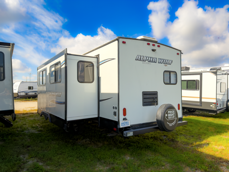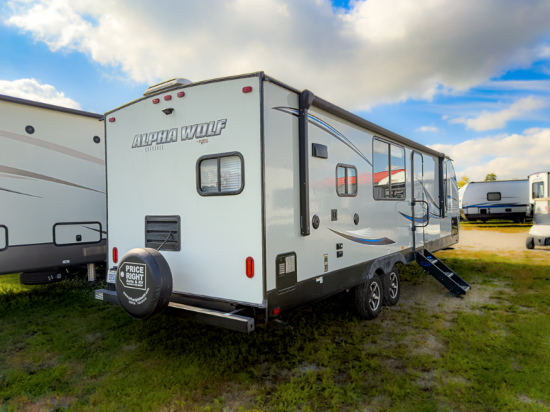 The Alpha Wolf 27RK-L combines Forest River build quality with a livable, easy-tow design — perfect for couples or small families upgrading from entry-level trailers.