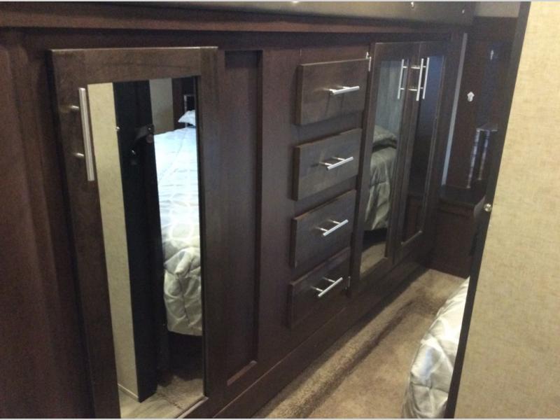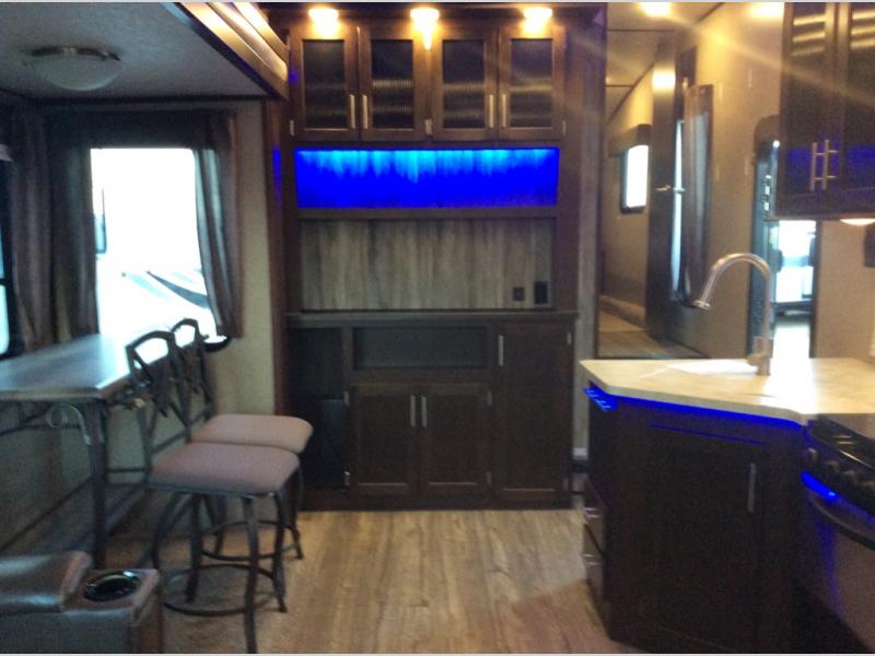 When you own this Arctic Wolf fifth wheel, you own a unit that is renowned for its quality and value. Whether it be the bedroom wardrobe, the walk-in kitchen pantry, or the two slides, this trailer is full of extra space so that you and your family have plenty of room to easily store your supplies and live comfortably. The private master suite will probably be your favorite thing about each vacation you take in this trailer because of the seclusion it gives you so that you can peacefully rejuvenate yourself for the next day of adventuring, and because this unit can sleep five people, everyone traveling with you will have their own place to rest each evening.