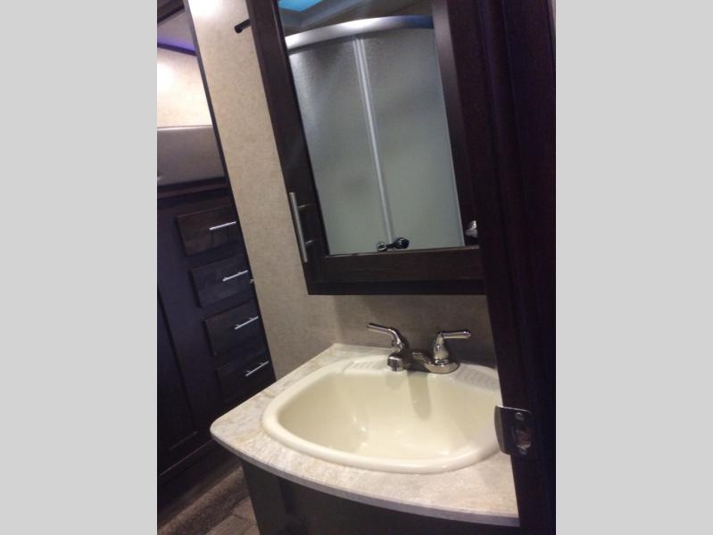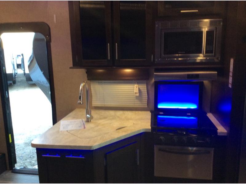 From its automatic leveling system to its 6' 4" slides with oversized panoramic windows, this fifth wheel by Forest River provides luxurious conveniences at an entry level price point. This structure has been designed so that even light duty trucks can tow it, yet the interior portion is still packed full with high-class amenities that will enhance your traveling experience, like the high circulation ceiling fan that adds to the character and functionality of the living area. Not only will you be thoroughly impressed with this RV, but so will everyone else that sees it because RV Pro has awarded this Arctic Wolf their "Best of Show" title.