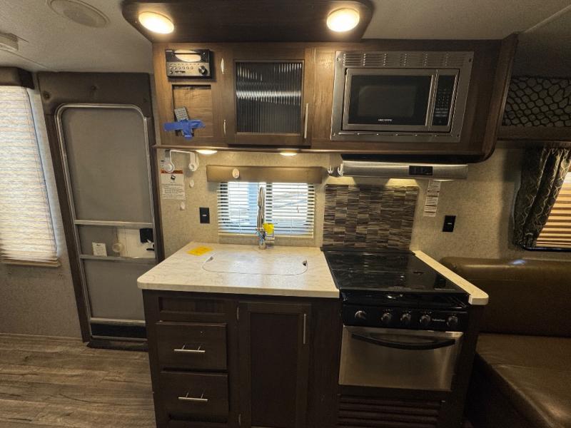 When you choose to camp with a Cherokee Grey Wolf toy hauler travel trailer you are getting a lightweight trailer which is easy to tow, as well as ample room throughout each model. With a variety of packages to select from you are sure to find the perfect one to suit your family's needs. The Basecamp Package provides a large exterior folding assist handle, black tank flush, solar prep and wiring, plus more! The Campfire Package provides a DVD player, a 6 gallon Gas/Electric DSI water heater, a skylight over the tub, and an oven. You can also choose from the optional Limited Package which upgrades the manual awning to a power awning that you can also add an LED light strip to, or add the ramp door patio system for some raised outdoor living space to enjoy. You can also choose optional high-gloss seamless countertops, an outside shower, and even upgrade to a hypoallergenic Evergreen mattress if you suffer from seasonal allergies, plus so much more! Come select your perfect Cherokee Grey Wolf model today!