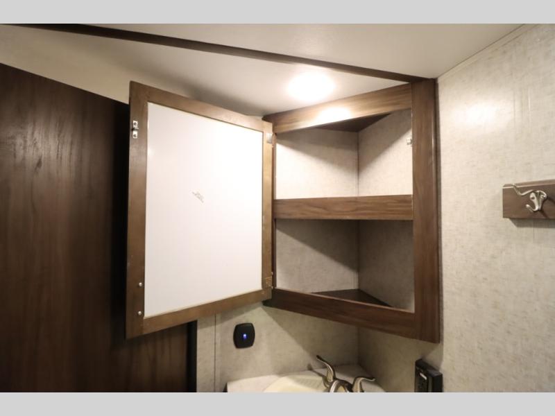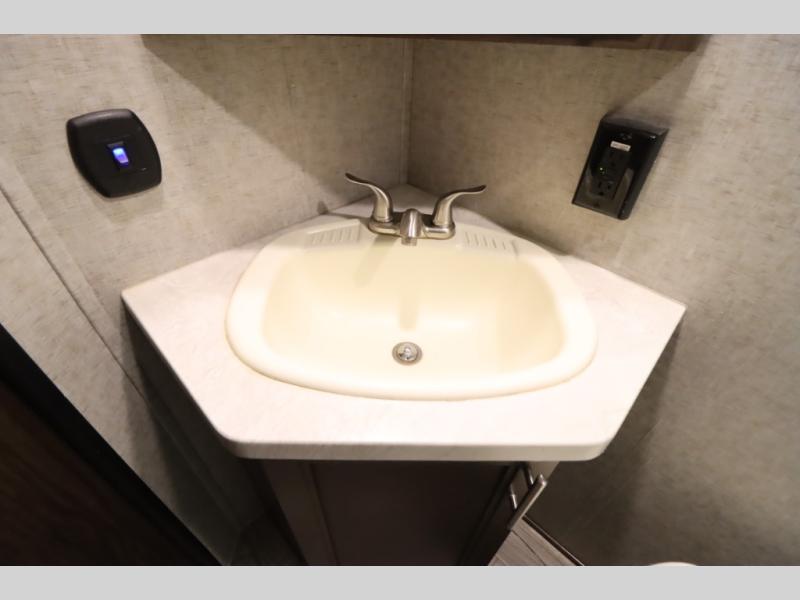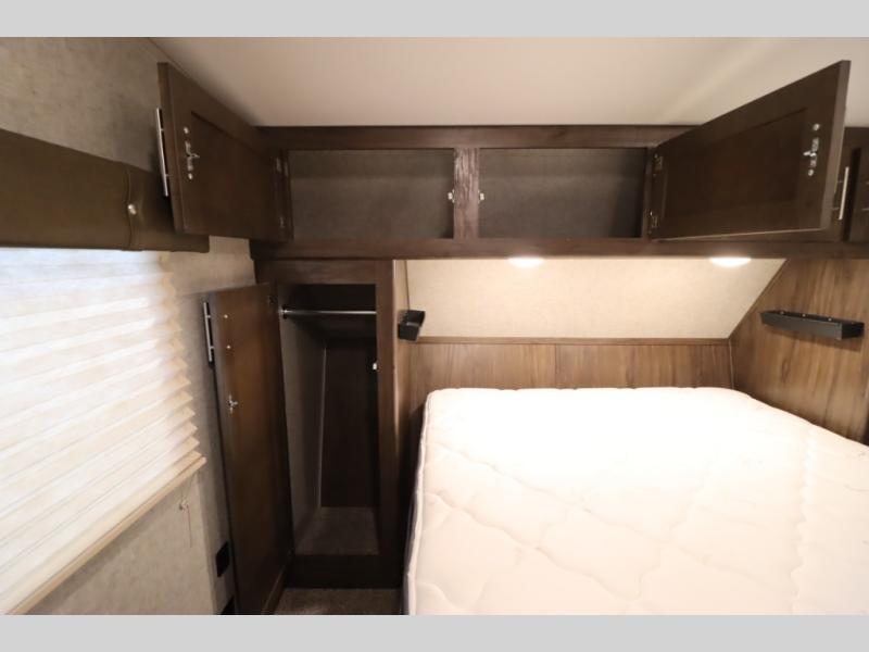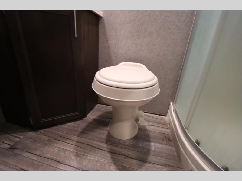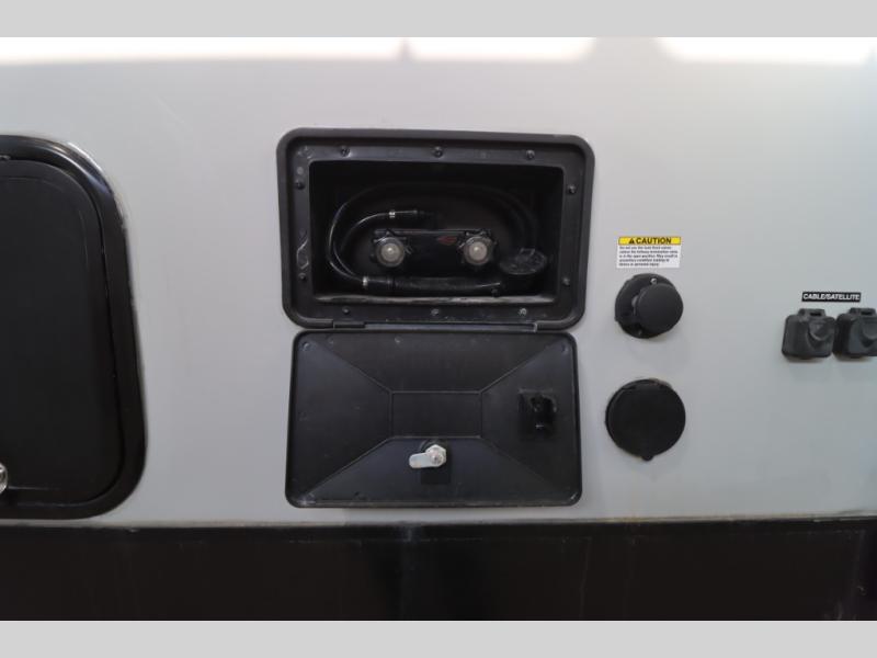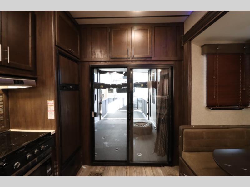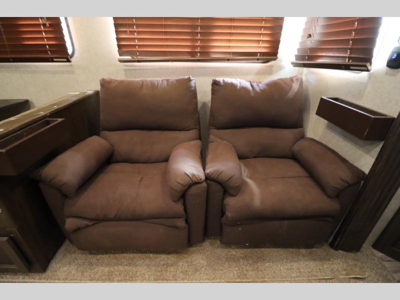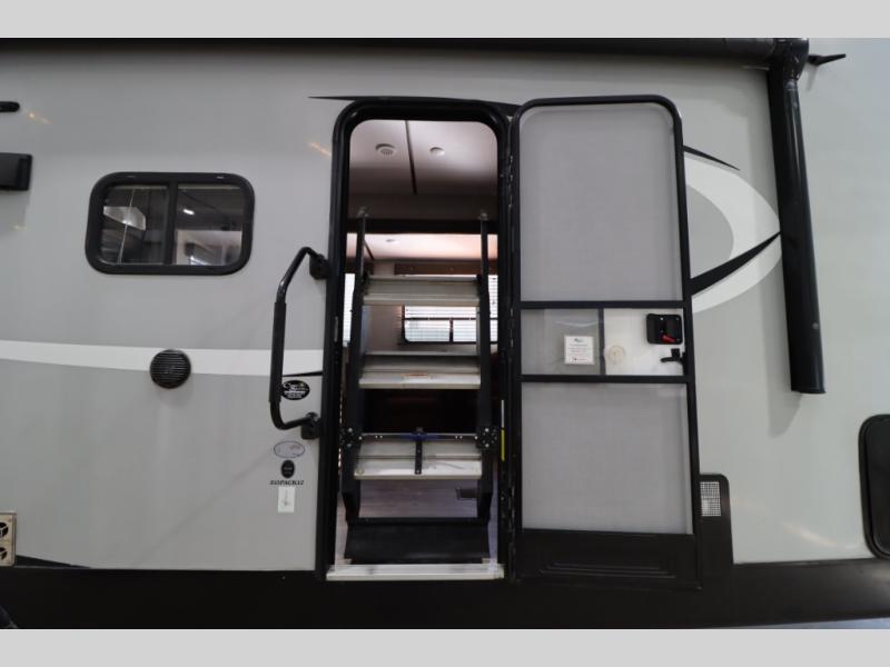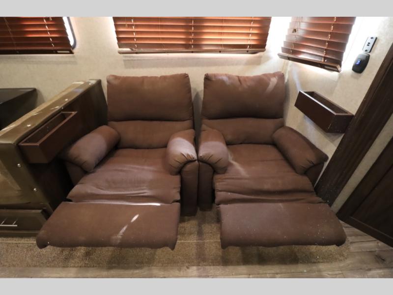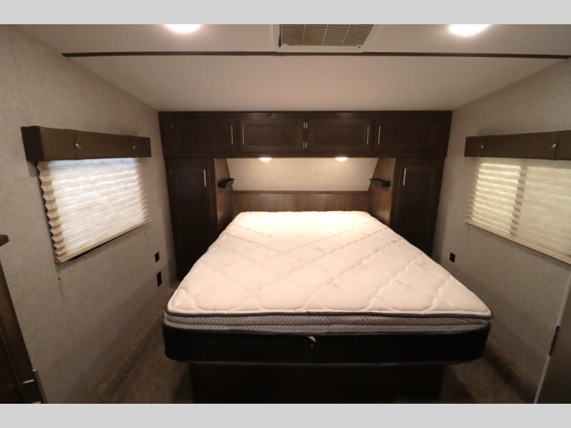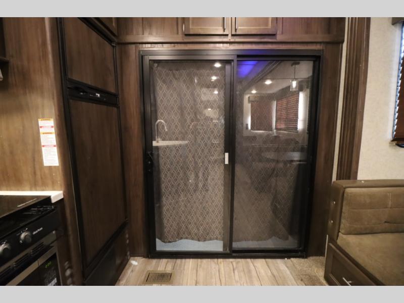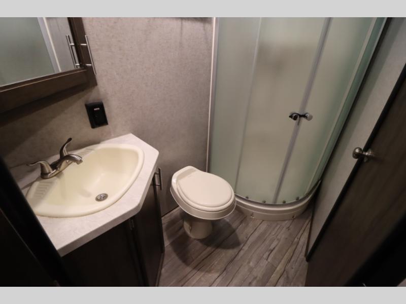 Load up your family, your off-road toys, and head out for a weekend camping trip that includes plenty of relaxing and playing outside. The cargo area has 12' of storage space as well as a side door and a Happijac power bed with two sofas below. A patio door separates the cargo space from the main living area. The front private bedroom features a queen bed with storage below plus there is easy access into the bathroom from the bedroom. Outside there is a 21' awning which offers plenty of shade and a pass through storage area for your extra camping gear and more!