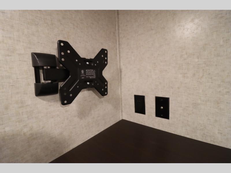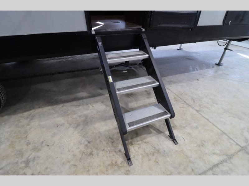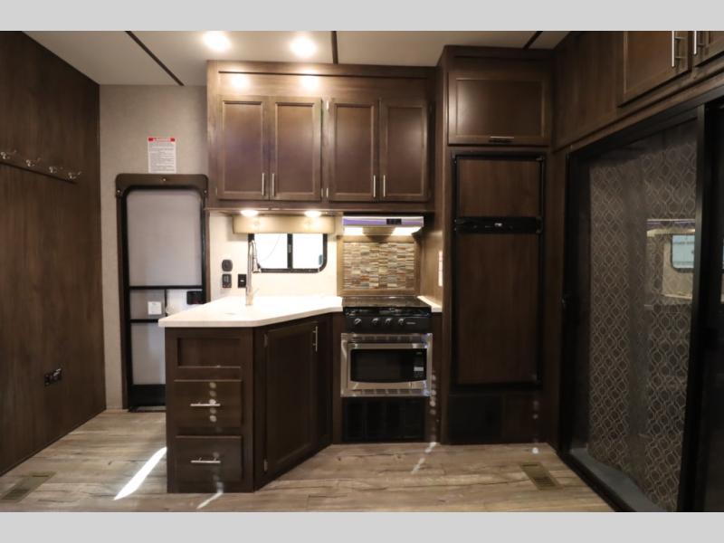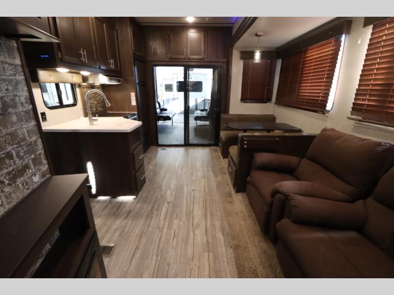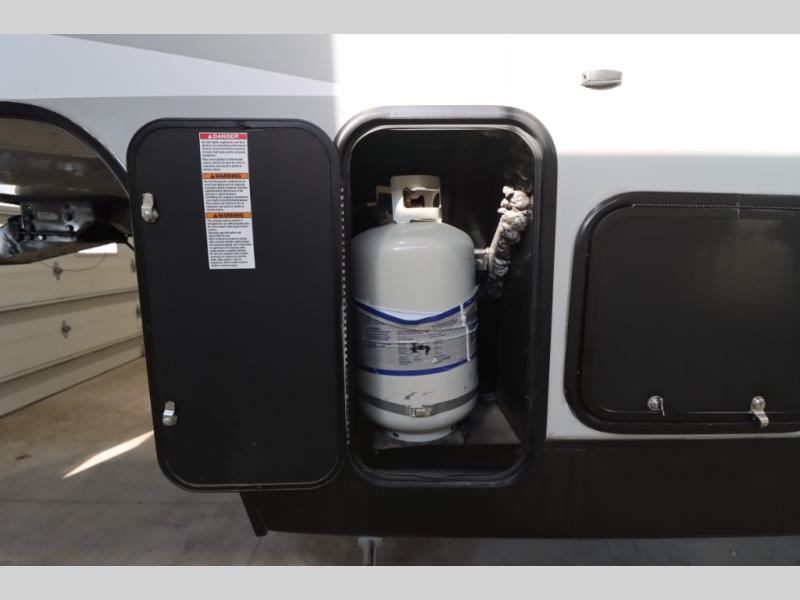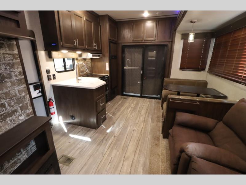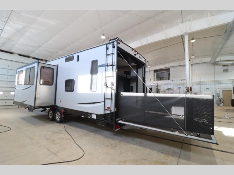 With any Cherokee Wolf Pack toy hauler fifth wheel it is easy to keep the outdoor fun going all weekend long! There is plenty of room for a few dirt bikes, a four wheeler, or an ATV - whatever your favorite riding toy is, there is space! You can clean up before coming indoors with the convenient outside shower. Inside you will find conveniences such as tongue and groove plywood floors, real wood doors and drawers, wood blinds, and an 8 cu. ft. refrigerator. The Limited Package includes a few more upgraded items such as a kitchen appliance package, a hypoallergenic Evergreen mattress, USB charging stations, a drop in cooktop with glass cover and so much more!