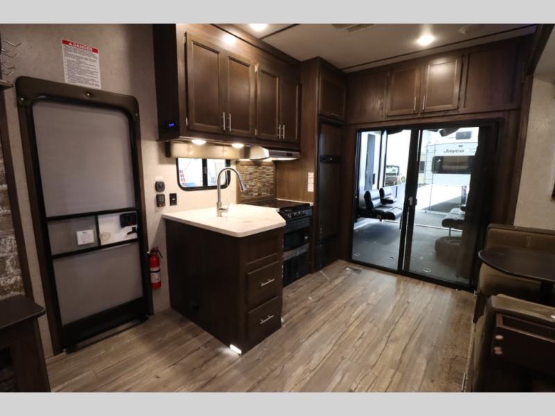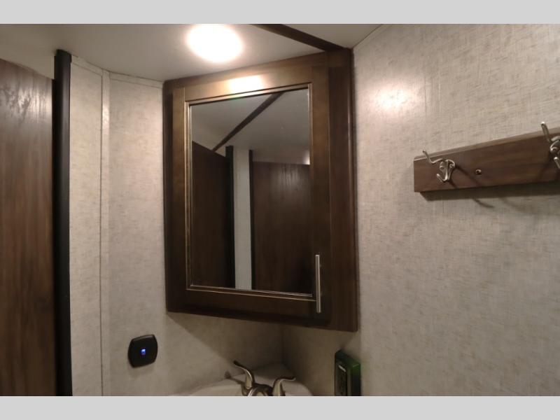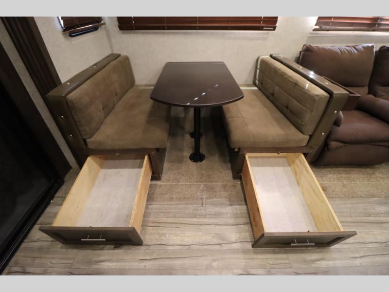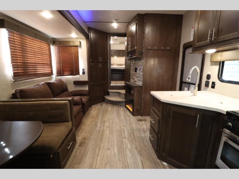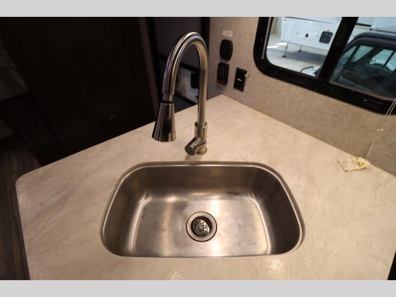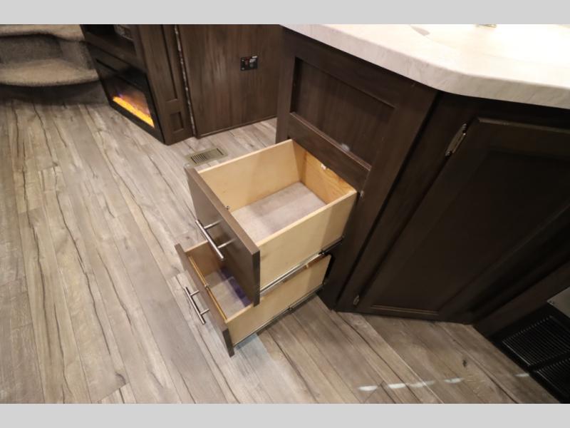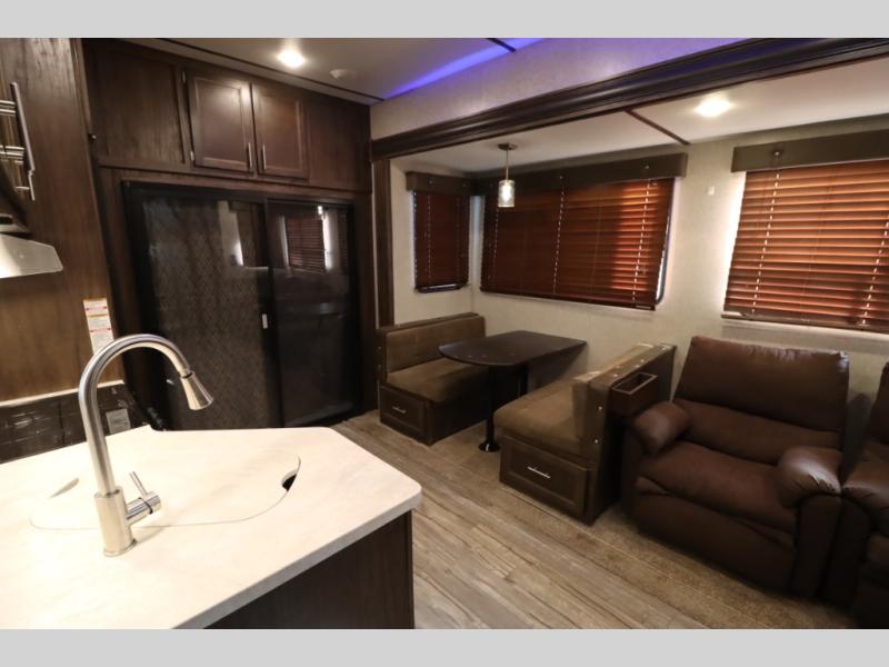 With any Cherokee Wolf Pack toy hauler fifth wheel it is easy to keep the outdoor fun going all weekend long! There is plenty of room for a few dirt bikes, a four wheeler, or an ATV - whatever your favorite riding toy is, there is space! You can clean up before coming indoors with the convenient outside shower. Inside you will find conveniences such as tongue and groove plywood floors, real wood doors and drawers, wood blinds, and an 8 cu. ft. refrigerator. The Limited Package includes a few more upgraded items such as a kitchen appliance package, a hypoallergenic Evergreen mattress, USB charging stations, a drop in cooktop with glass cover and so much more!