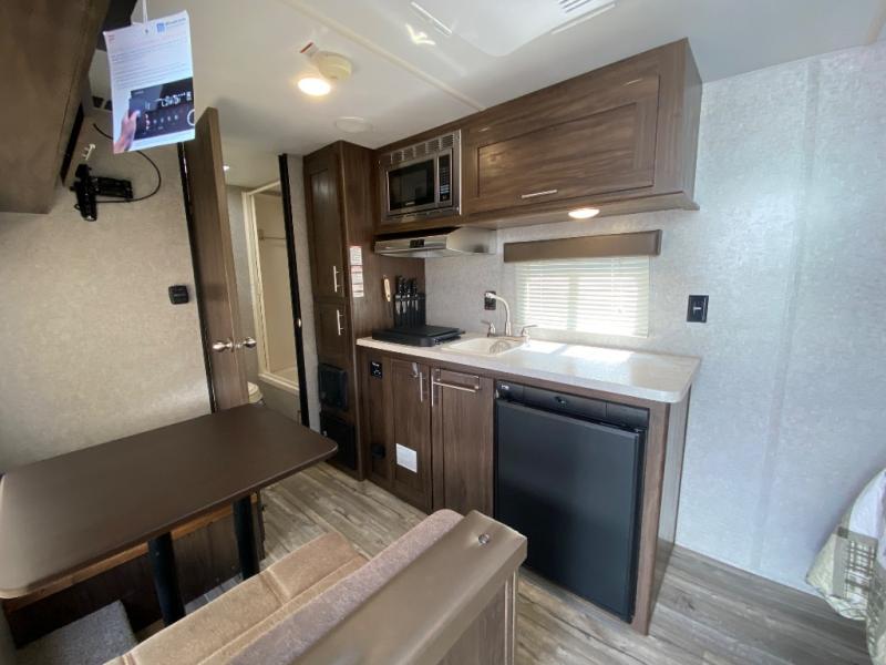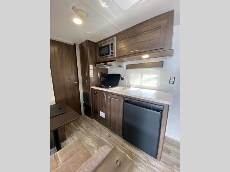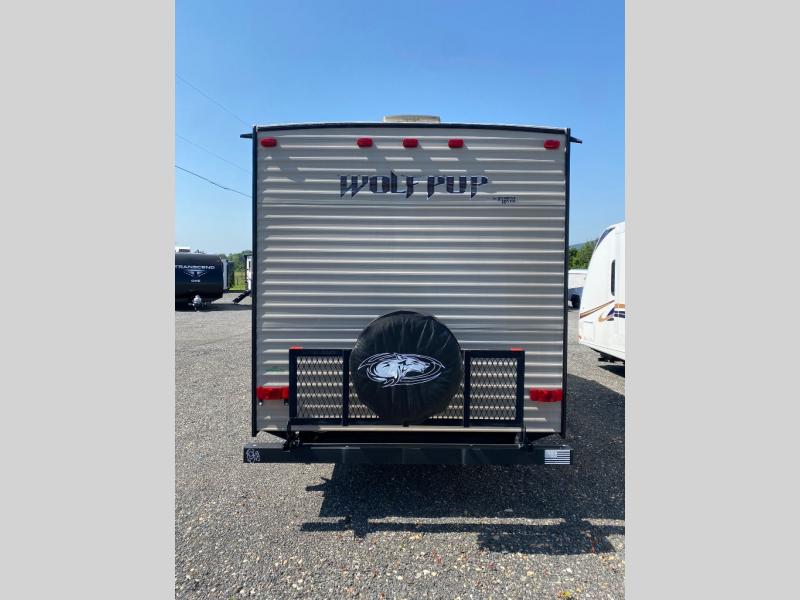 When you choose to camp with a Cherokee Wolf Pup travel trailer you are getting a lightweight trailer which is easy to tow as well as ample room throughout each model. The Limited Package offers features such as an awning with an LED light strip, high-gloss seamless countertop, an outside shower with hot and cold water, an upgraded hypoallergenic Evergreen mattress and more! The Advantage Package includes the following features an aerodynamic radius front profile, high-impact front metal, and a large exterior folding assist handle plus more! There is also the Camping Package which offers a 3.3 cu. ft. bar and grill refrigerator, a one-piece walkable decked roof, a high rise faucet, a microwave, and so much more! Come select your Wolf Pup model today!