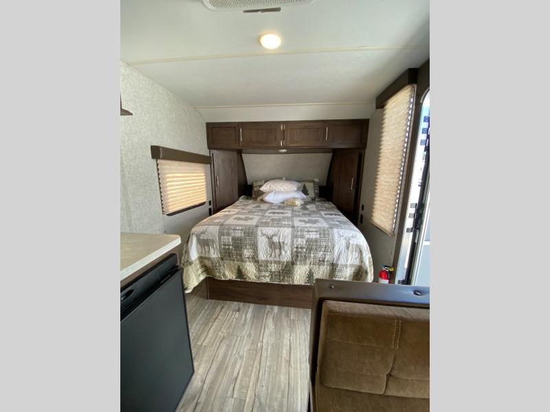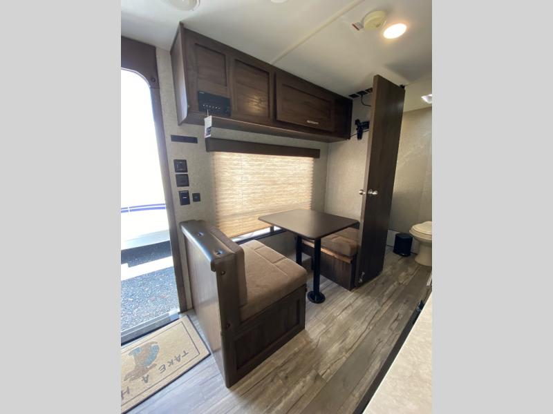 Come load up your family of three and see just how easy and fun camping can be when you choose to camp with this Cherokee Wolf Pup 16FQ travel trailer. Sleeping room can be found at the front queen bed as well as the dinette can convert into additional sleeping space - if needed. You will enjoy the convenience of the on-board bathroom in the rear, plus so much more!