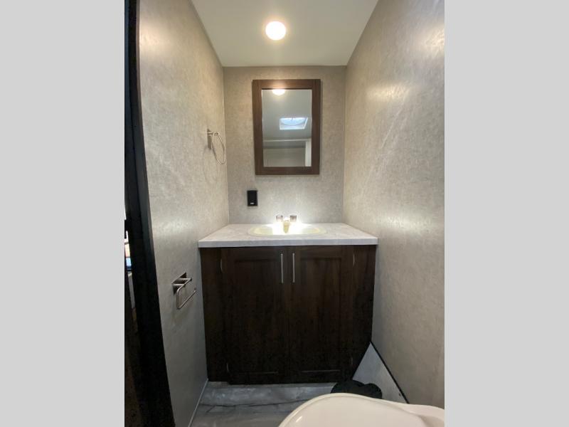 What I liked most: The cabinets are deep which allows for more storage, we all know how important that is. The bed area is open and has plenty of arms reach counter space and overhead storage. The bathroom seems to be a good size. Ceiling speaker system is a nice touch.
