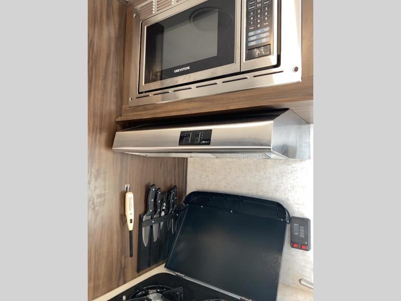 What I liked most: The design is convenient and the bed is great for taller people. There are plenty of windows, storage space and counter top space. Indoor/outdoor speaker system and cable hookups are awesome. With the 4-way electric/propane/battery/solar power options, this thing is an all-around entertainment travel vessel--tailgating to boonedocking to road tripping, it's perfect travel size.