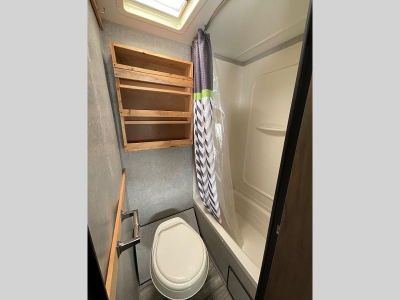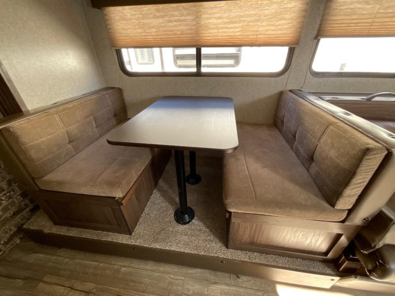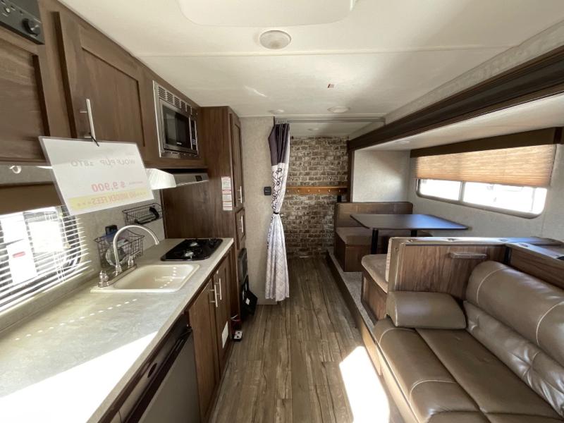 Are you ready to see just how fun and easy camping can be with this Cherokee Wolf Pup 18TO? You will find sleeping space for up to five people in this model. The slide out helps to open up the floor space plus within the slide out you will find a dinette and a sofa with a bunk above. You will enjoy the convenient rear bathroom - now you won't have to use the campground facilities!