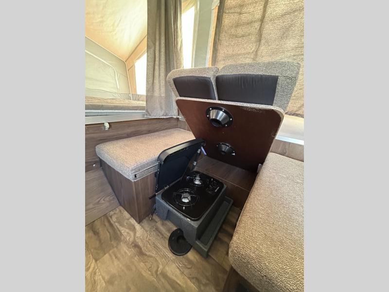 Forest River's Flagstaff MACLTD Series tent campers make time spent with family and friends exactly what it should be - relaxing, enjoyable and easy to do! These units offer luxurious features from home such as quilted top mattresses, a residential style kitchen faucet, wood drawers with full extension metal guides, and a comfortable family style dinette with 4" cushions. Each unit is constructed with a tubular powder coated steel frame that is backed by a five-year frame warranty. They also feature a fiberglass vacuum bonded radius roof with no center seam, a one-piece undercoated structure wood floor to the five piece sectionalized Vinolon Supreme tenting, full perimeter aluminum bed frames, and tinted vinyl windows.