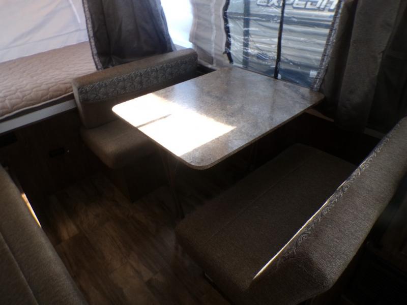Forest River's Flagstaff MACLTD Series tent campers make time spent with family and friends exactly what it should be - relaxing, enjoyable and easy to do! These units offer luxurious features from home such as quilted top mattresses, a residential style kitchen faucet, wood drawers with full extension metal guides, and a comfortable family style dinette with 4" cushions. Each unit is constructed with a tubular powder coated steel frame that is backed by a five-year frame warranty. They also feature a fiberglass vacuum bonded radius roof with no center seam, a one-piece undercoated structure wood floor to the five piece sectionalized Vinolon Supreme tenting, full perimeter aluminum bed frames, and tinted vinyl windows.
