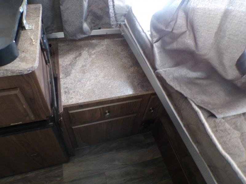 Hop into this Forest River Flagstaff MAC 228 pop-up camper for your next camping adventure! It features a swing galley that allows you to set your sink on either the floor while traveling while the camper is down or on top of the sink base while in use. The gaucho sofa provides a seating area during the day and a sleeping area at night. If you choose the optional shower with cassette port-a-pottie then you can enjoy the convenience of having your own bathroom. You can prepare delicious burgers on the outdoor gas grill.