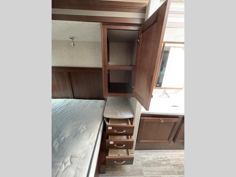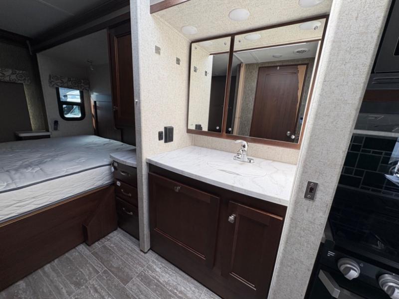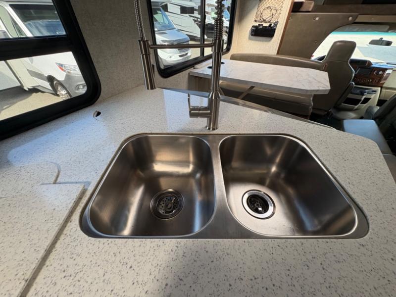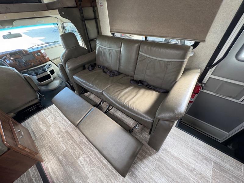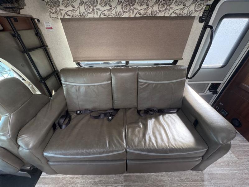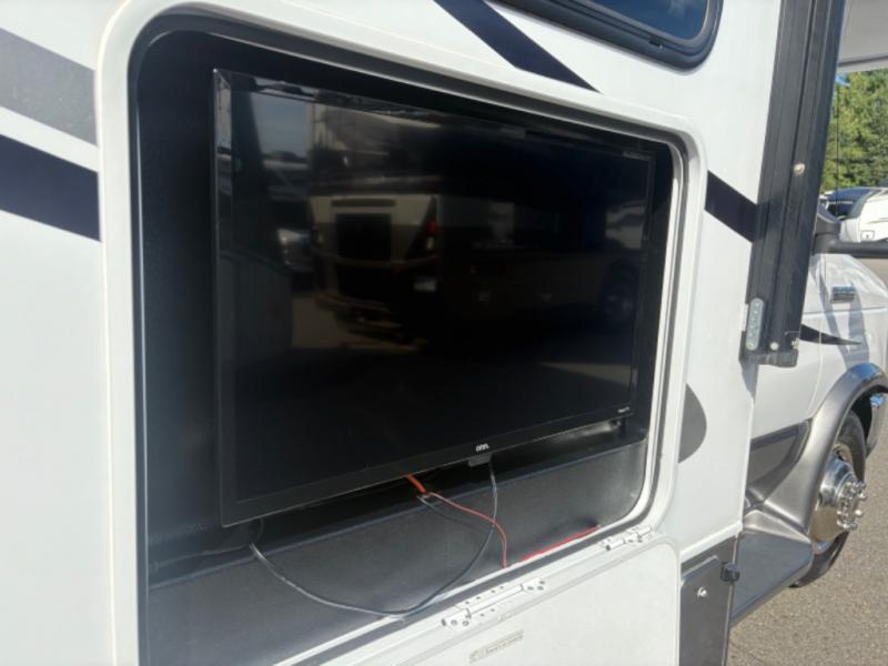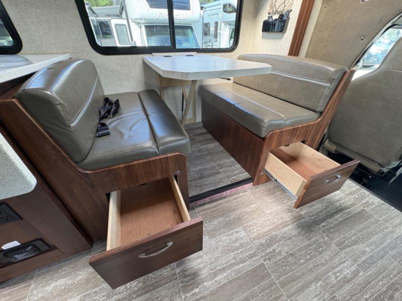 This Ford chassis Forester 3051S features a full wall slide out along the driver's side which gives this unit a bit of walking around space. You have a booth dinette and a sofa opposite one another that both have seatbelts to keep your passengers safe while you travel, and both can fold down into sleeping space at night. There is a split bath that allows you to use both sides at one time. The private rear bedroom has plenty of storage so you can bring whatever you would like to. There is even a place to add an optional TV so you can watch a movie before you go to sleep.