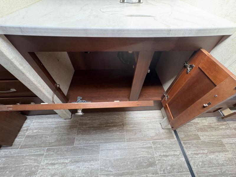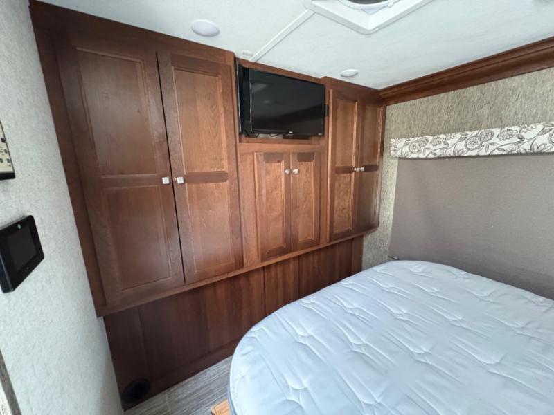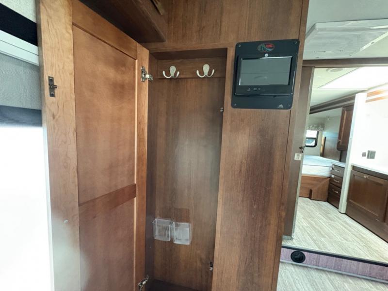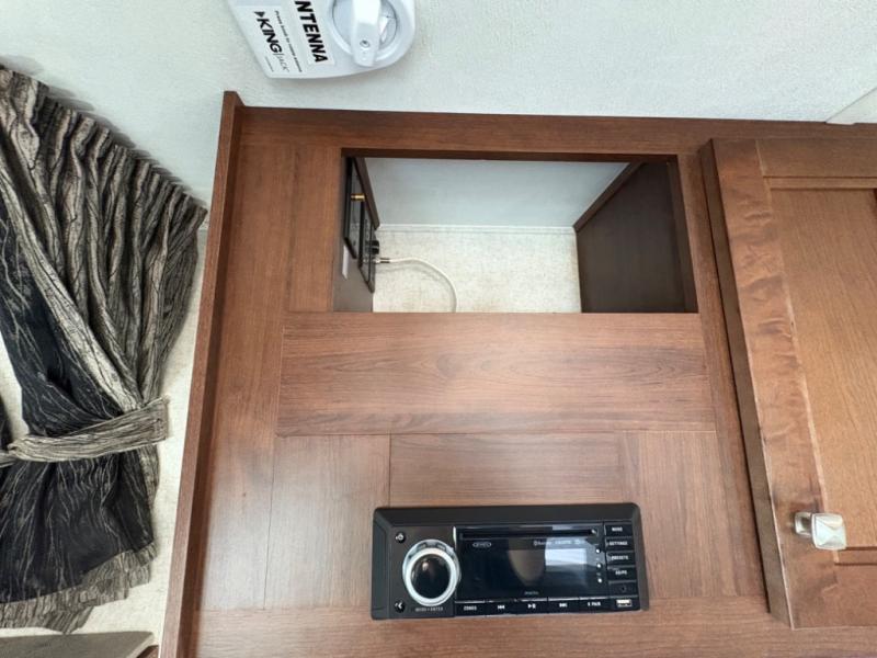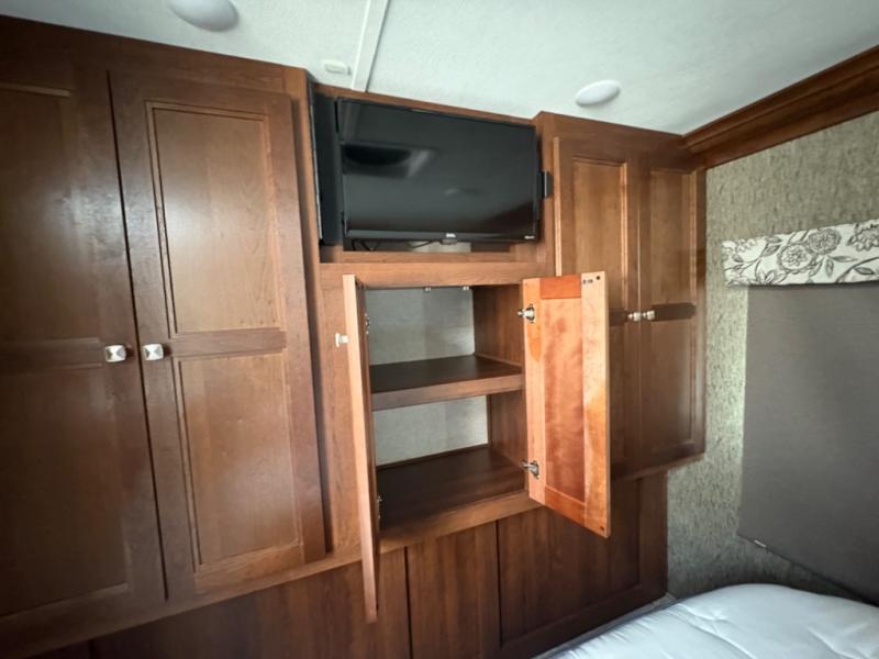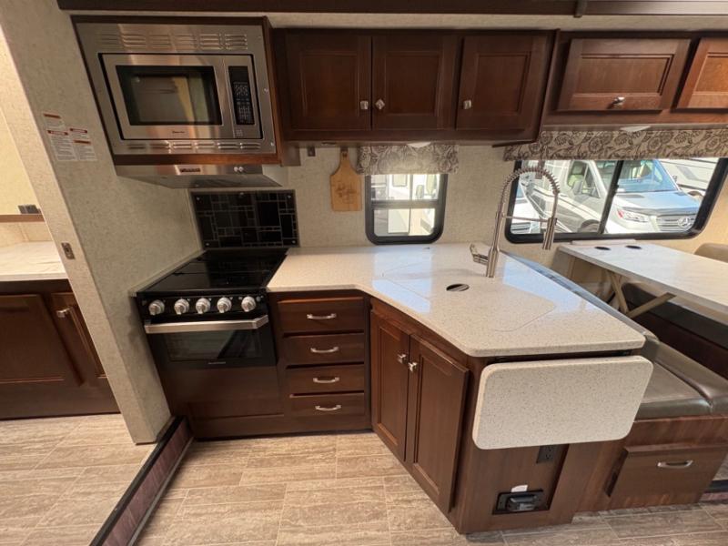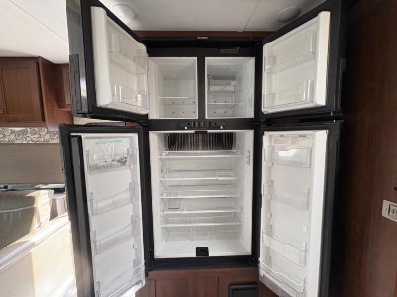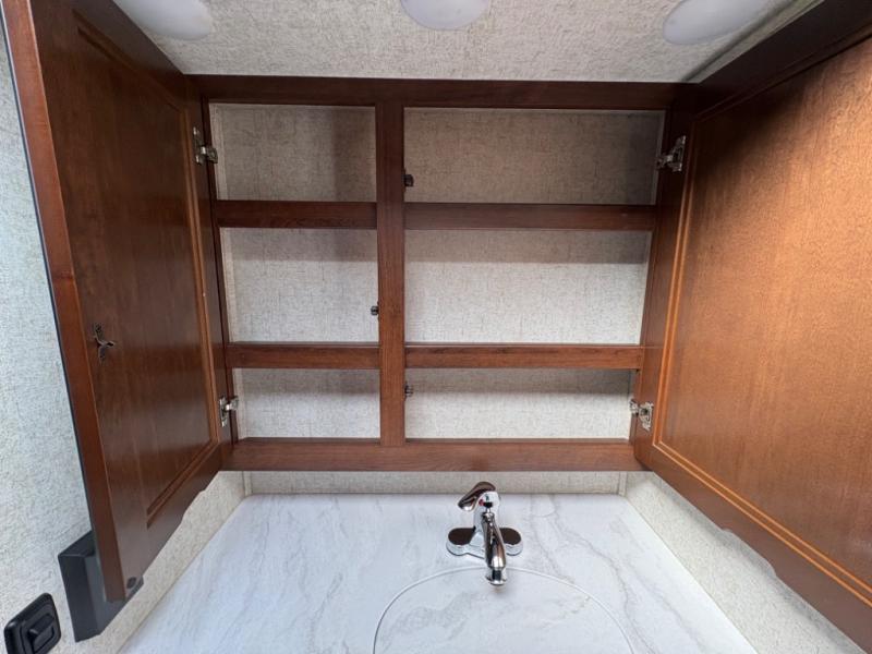 This Ford chassis Forester 3051S features a full wall slide out along the driver's side which gives this unit a bit of walking around space. You have a booth dinette and a sofa opposite one another that both have seatbelts to keep your passengers safe while you travel, and both can fold down into sleeping space at night. There is a split bath that allows you to use both sides at one time. The private rear bedroom has plenty of storage so you can bring whatever you would like to. There is even a place to add an optional TV so you can watch a movie before you go to sleep.