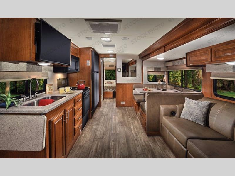 This unit by Forest River has been outfitted with the latest in modern advances when it comes to motorhomes. The LED interior lighting allows the entire coach to feel bright and cheerful even on the darkest days, and the 6' 10" ceiling truly gives you the space you need to move around freely without the concern of bumping your head. Even the exterior portion of this motorhome provides you with extra space to host a get together with friends because it includes an outdoor entertainment center for you to watch the big game on, marine-grade exterior speakers for you to use to jam out to your favorite tunes, and an electric awning with LED lights for you to take shelter under while you party.