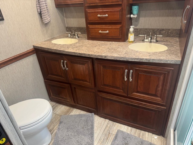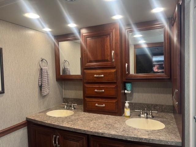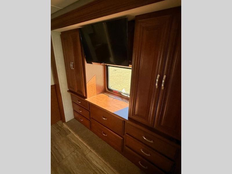 A bath an a half, two slide outs, and plenty of space, are just some of the features that will draw you to this Legacy SR 340 360RB class A diesel motor home by Forest River! This unit is even prepped so that you can add the optional washer/dryer and stay clean throughout your entire trip. There is plenty of seating options between the cockpit, visionary sofa bed, and the booth dinette. If you've exhausted yourself with outdoor activities then you can re-coop by watching your favorite movies on one of the three TV's, one of which is located outside!