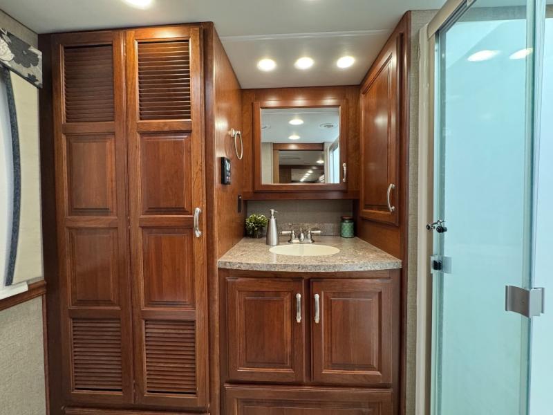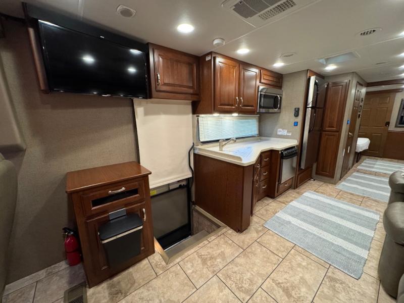 Start traveling to new destinations in comfort and style in this Legacy SR 340 38C class A motor home. This model by Forest River features plenty of comforts and space. From the full wall slide out, two full bathrooms, to the overhead cabinets, you will love all of the conveniences. Your kiddos are sure to enjoy the set of bunk beds that also have 2 20" LED TV's. You will be able to keep your group happy and full the entire trip with all of the space inside the residential refrigerator and the pantry. Enjoy the outdoors to it's fullest by grabbing a chair and your favorite beverage and relax underneath the 18' power awning with LED lights.