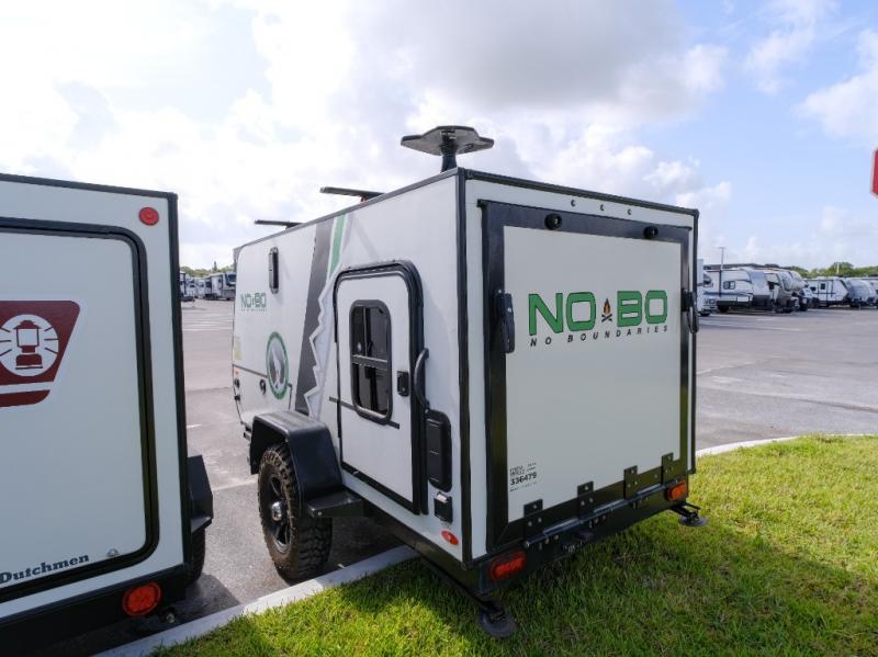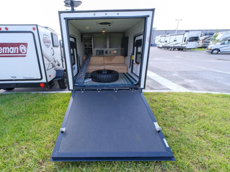 When versatility is what you need, choose this No Boundaries travel trailer by Forest River for your new basecamp when out exploring. Model NB10.6 provides a rear ramp door so you can easily load and unload all of your gear. Coming in just under 2,000 lbs. you will easily be able to tow it with your mid-sized SUV or small truck. There is plenty of storage space throughout, plus an outdoor slide out cook-top and cooler so you can enjoy a great meal. There is also a 60" x 82" lounger in back for two to sleep comfortable inside. LED lighting, both inside and out, makes any task easy to accomplish even after dark.