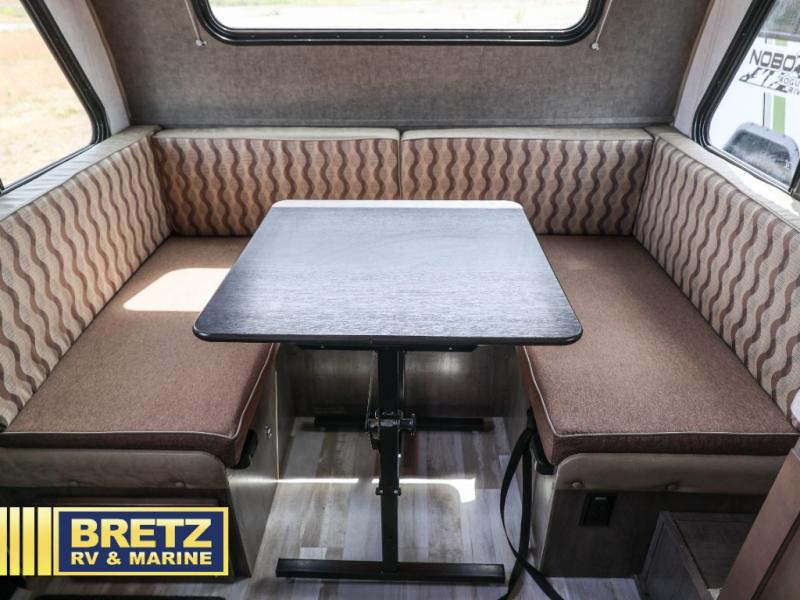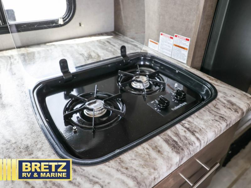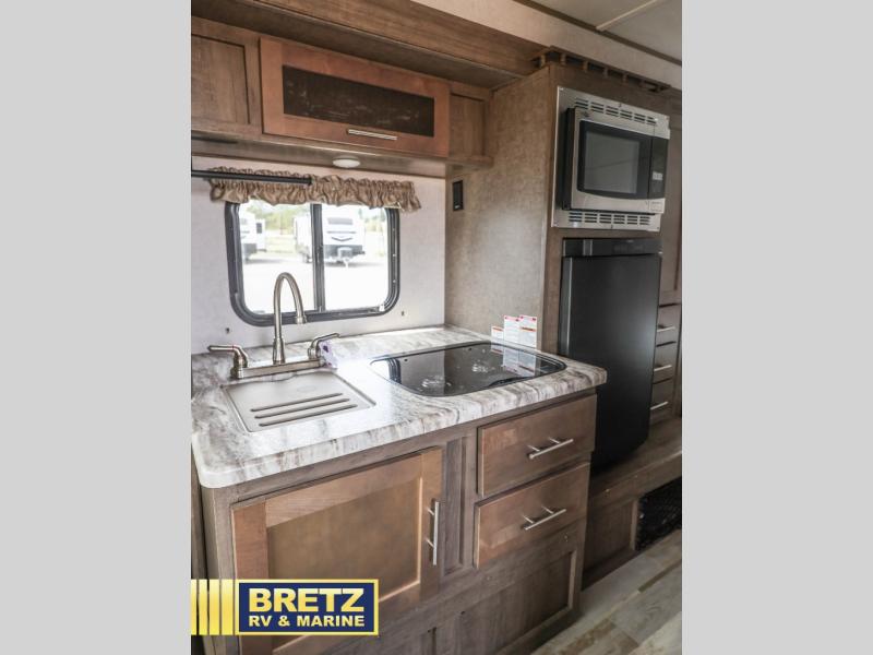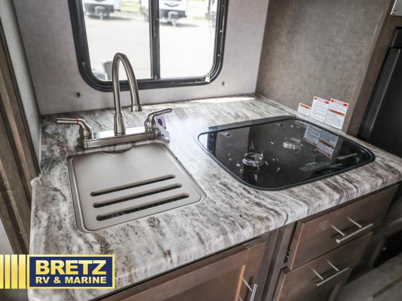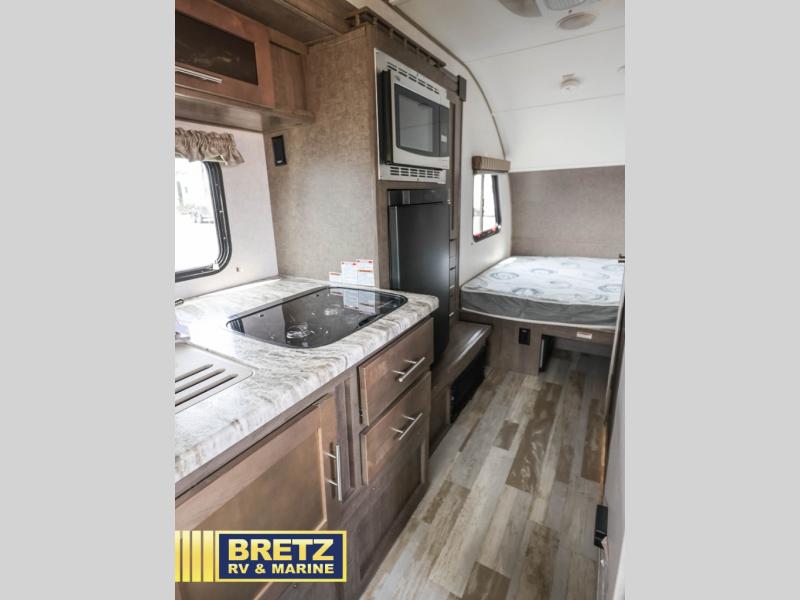 For the couple who is ready to camp anytime and anywhere you will love how easy it is to camp with this R Pod travel trailer RP-190. The single slide out helps to open up the floor space and within this slide out you will find the kitchen amenities needed to fix your meals while you are away from home. You can enjoy your meals at the 42" x 74" dinette and this can double as a sleeping space, if needed. Along the front of this model there is a queen bed where you can rest up for another day of fun and adventure. With all of the exterior storage you can easily bring along all of your necessary camping items and more! This model is available in the Hood River Edition which includes advanced ground clearance, X-treme 15" off-road tires, aluminum rims, and a MaxxAir vent cover.