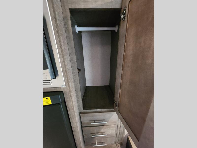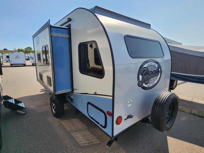 For a sturdy one-of-a-kind travel trailer, choose the R Pod by Forest River. Along the exterior you will find a two tone gel-coat fiberglass, custom tinted safety glass windows, and convenient magnet baggage door catches. Inside these models you will enjoy the Designer Carefree flooring, grey shaker style cabinets, hardwood drawer fronts with full extension ball bearing drawer glides, plus the decorative window treatments! These trailers are ready to go when you are! Come select your R Pod today!