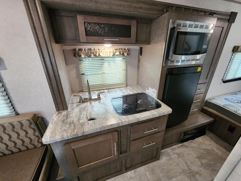 For the couple who is ready to camp anytime and anywhere you will love how easy it is to camp with this R Pod travel trailer RP-190. The single slide out helps to open up the floor space and within this slide out you will find the kitchen amenities needed to fix your meals while you are away from home. You can enjoy your meals at the 42" x 74" dinette and this can double as a sleeping space, if needed. Along the front of this model there is a queen bed where you can rest up for another day of fun and adventure. With all of the exterior storage you can easily bring along all of your necessary camping items and more!