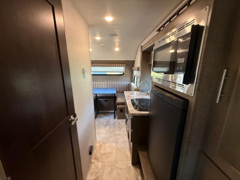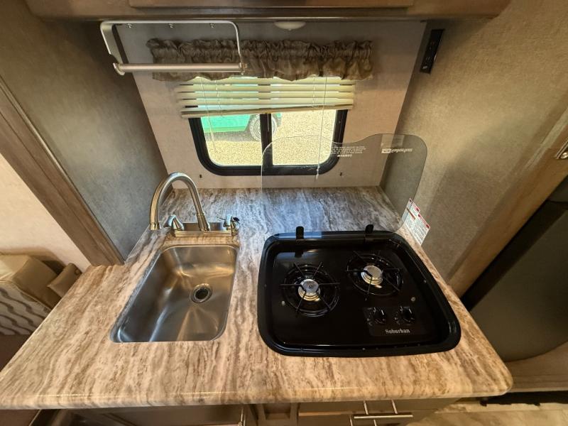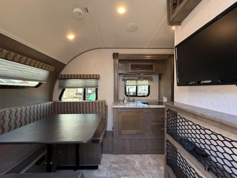 For the couple who is ready to camp anytime and anywhere you will love how easy it is to camp with this R Pod travel trailer RP-190. The single slide out helps to open up the floor space and within this slide out you will find the kitchen amenities needed to fix your meals while you are away from home. You can enjoy your meals at the 42" x 74" dinette and this can double as a sleeping space, if needed. Along the front of this model there is a queen bed where you can rest up for another day of fun and adventure. With all of the exterior storage you can easily bring along all of your necessary camping items and more!
