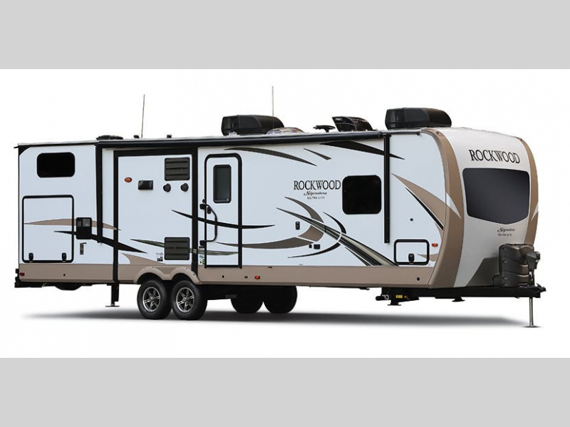 The Forest River Rockwood Signature Ultra Lite travel trailers are anything but ordinary. You will love all of the space inside each model! Once you step inside you will find Driftwood cabinetry, solid wood and raised panel doors and drawers, plus LED lighting throughout. Outside there is a power awning with adjustable rain and dump, LED lights and a seamless one piece roof, plus more! Each model also includes a Standard Package which features the following an upgraded 22" gas oven, solid surface Corian kitchen countertops, outside speakers, and so much more! Why wait? Get your Rockwood Signature Ultra Lite travel trailer today!